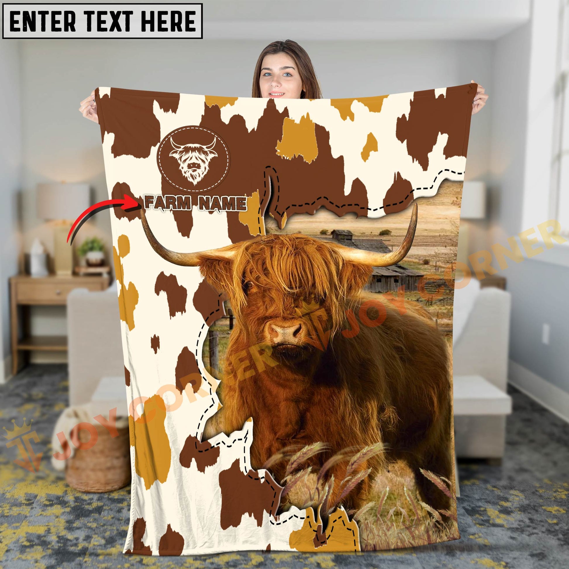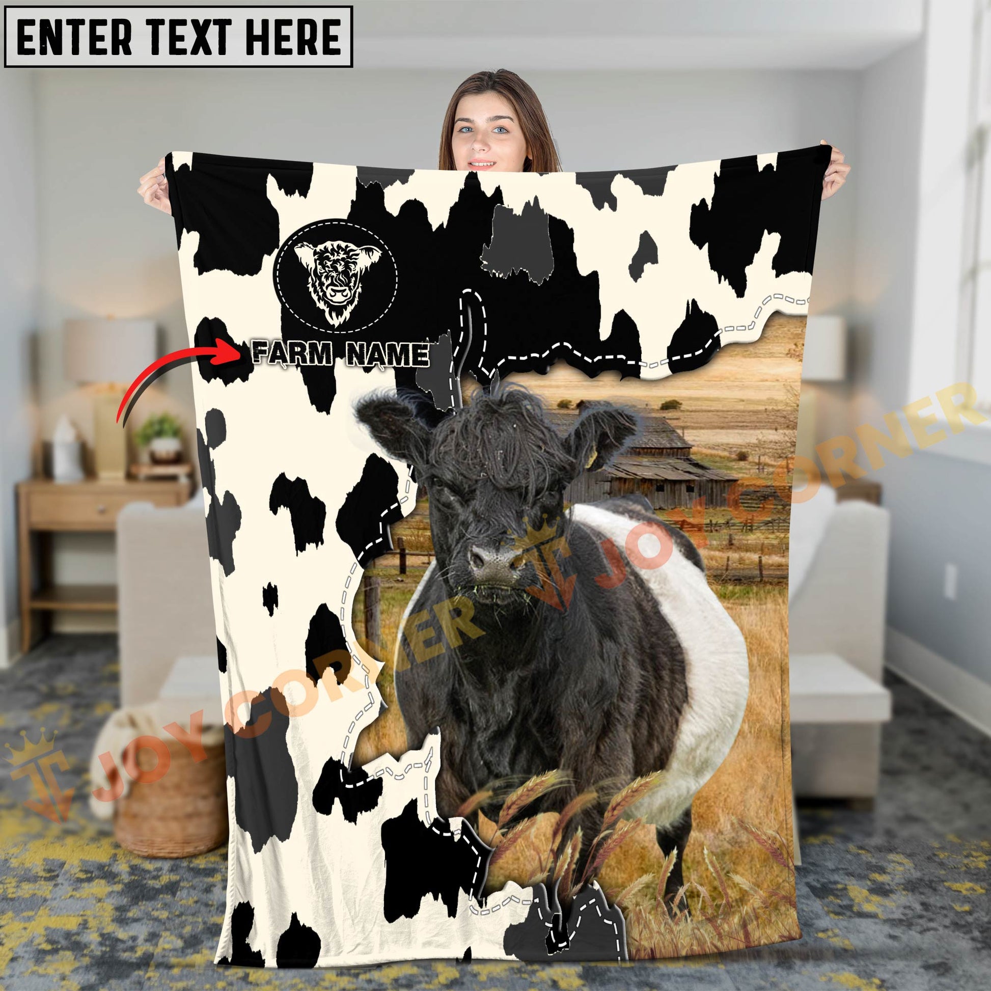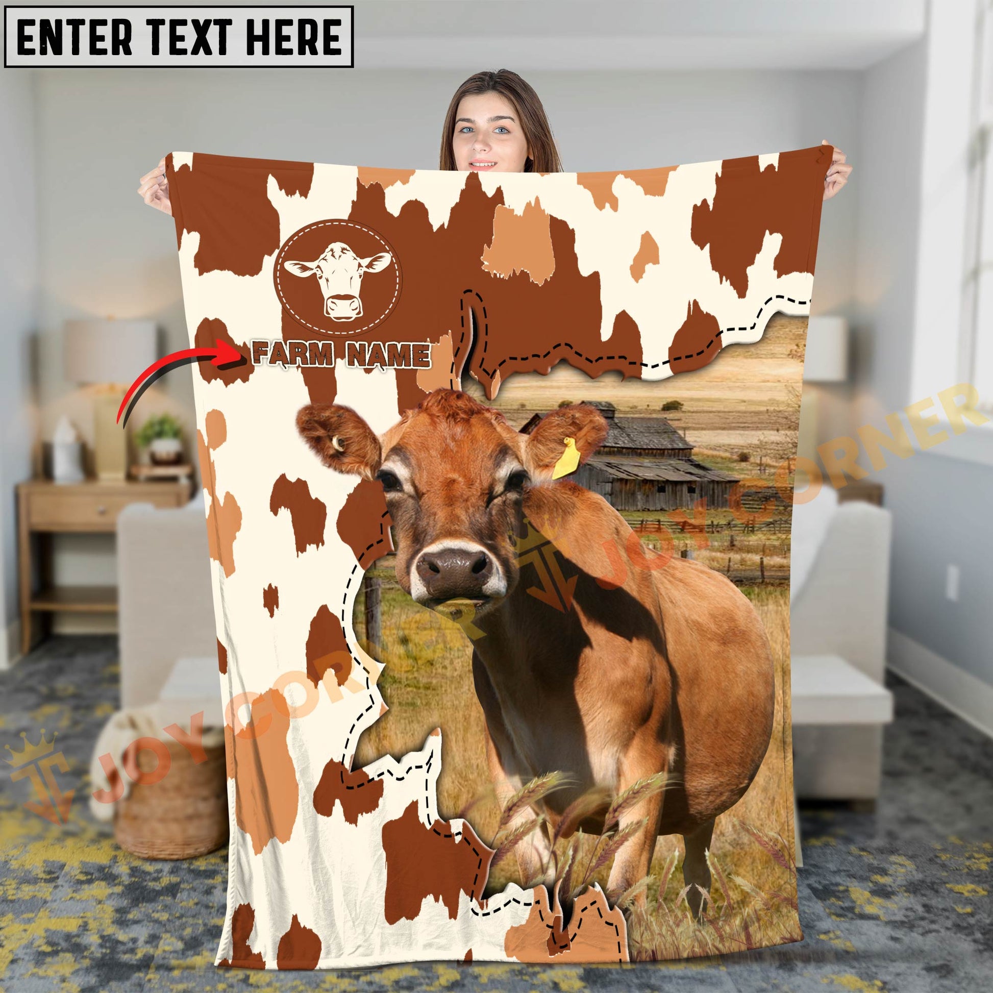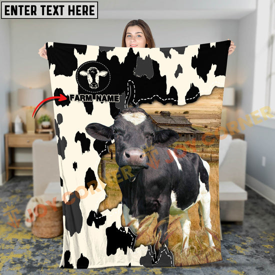 Joycorners Cattle Cow Farm Landscape Rustic Pattern Personalized Name 3D Blanket (10 Breeds)