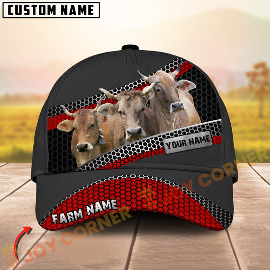 Joycorners Cattle Cow Honeycomb Metal Industrial Personalized Name 3D Cap (10 Breeds)