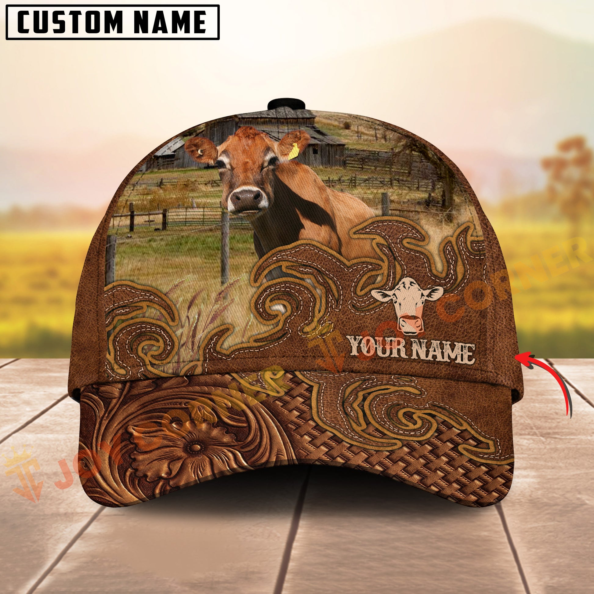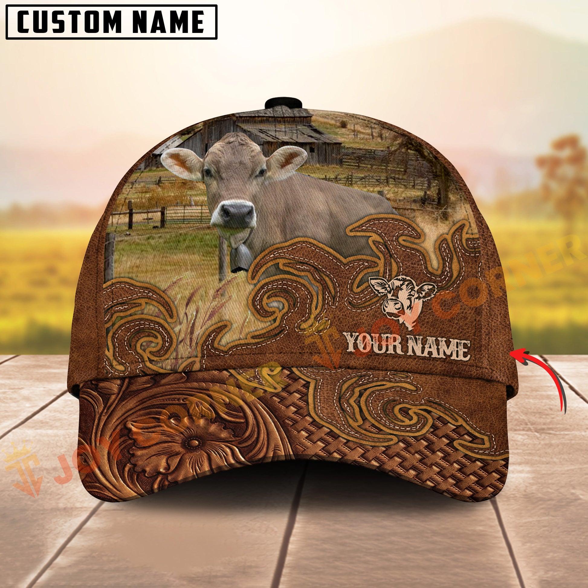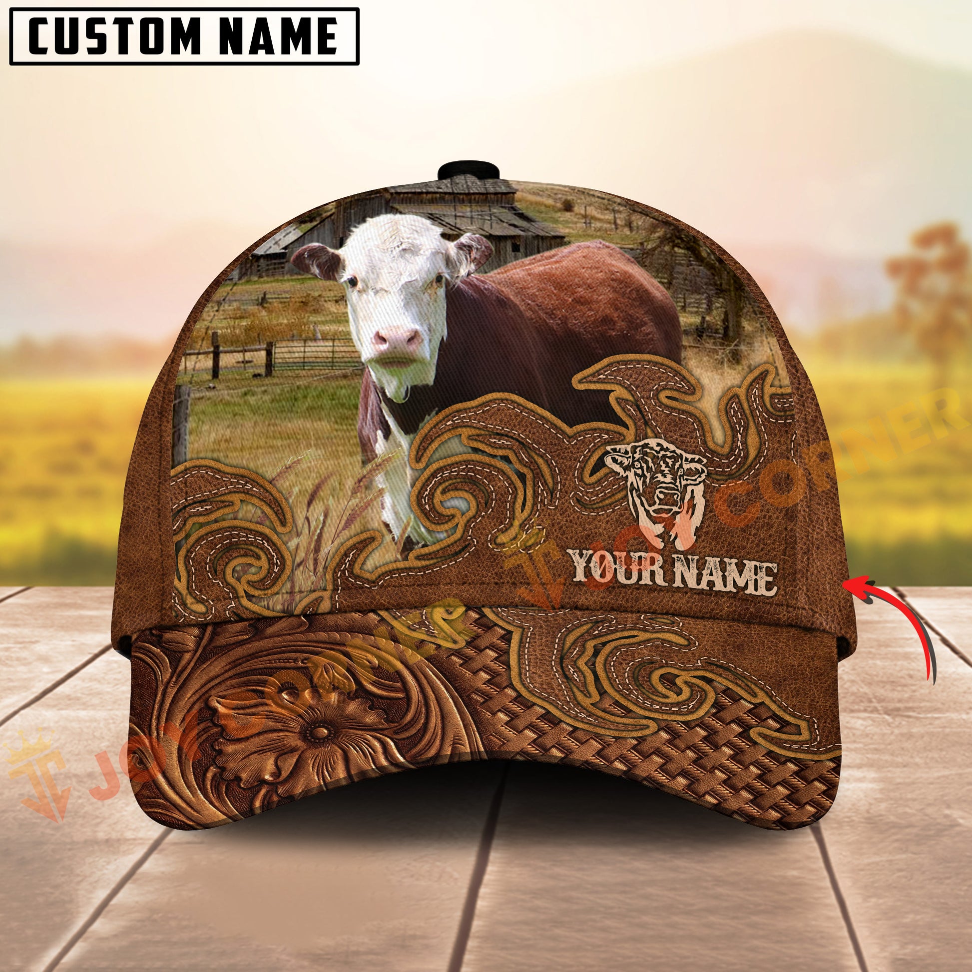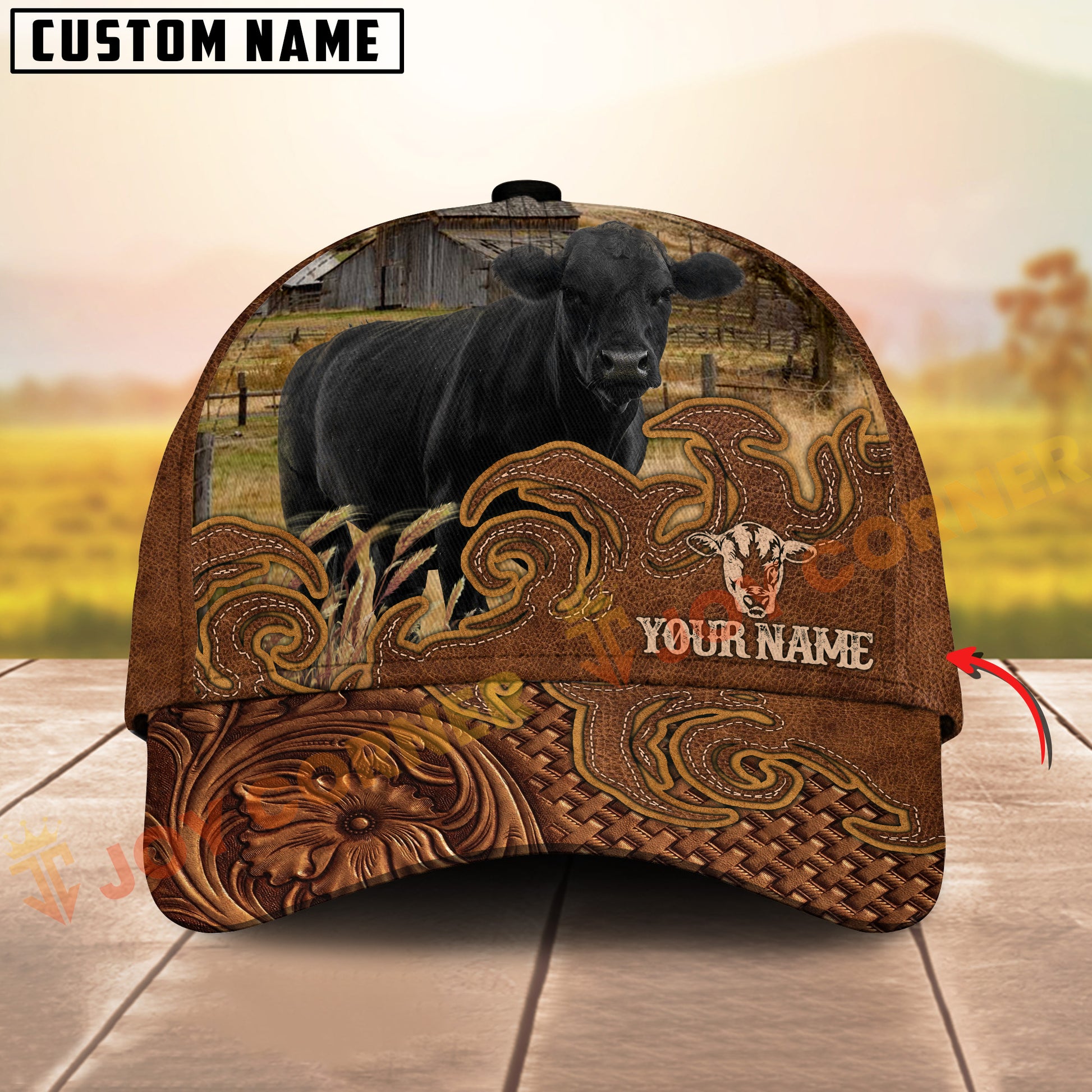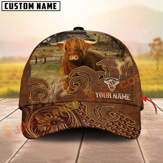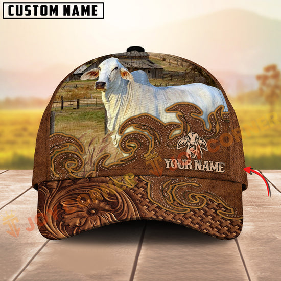 Joycorners Cattle Cow Tooled Leather Floral Western Personalized Name 3D Cap (10 Breeds)