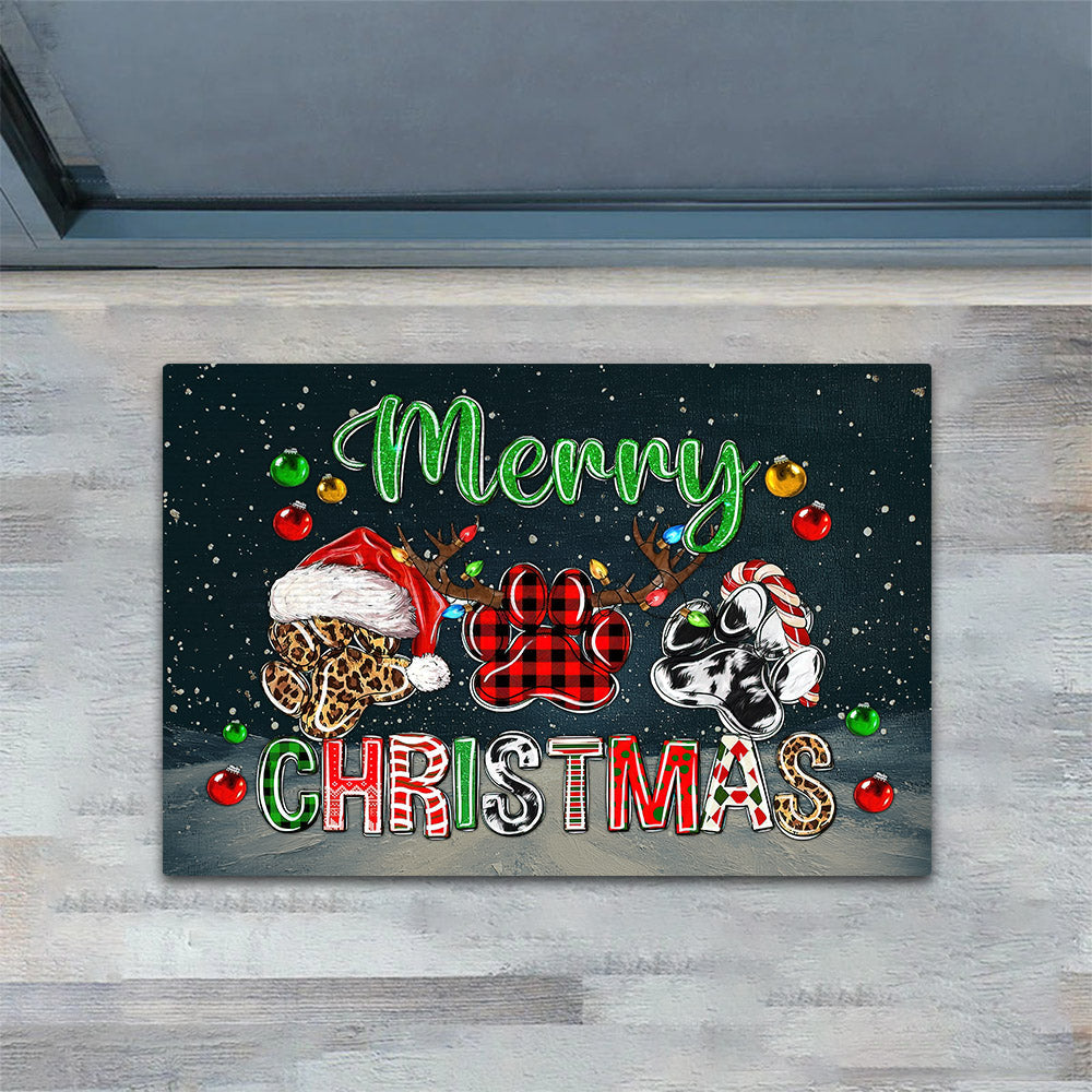 Joycorners Christmas Dog Paws Doormat, Merry Christmas Doormat For Home Decor Housewarming Gift, Welcome Mat Gift For Dog Lovers LM0210