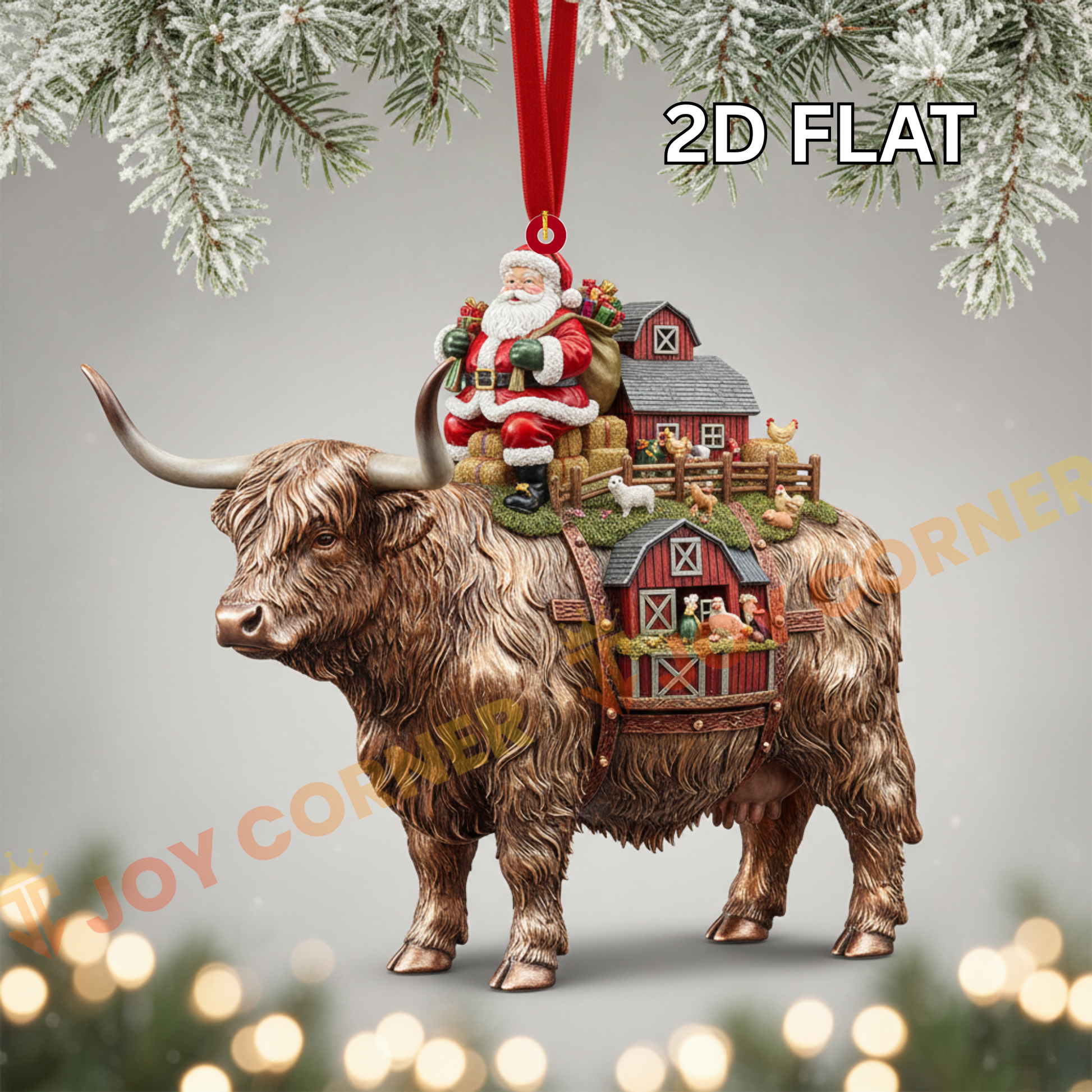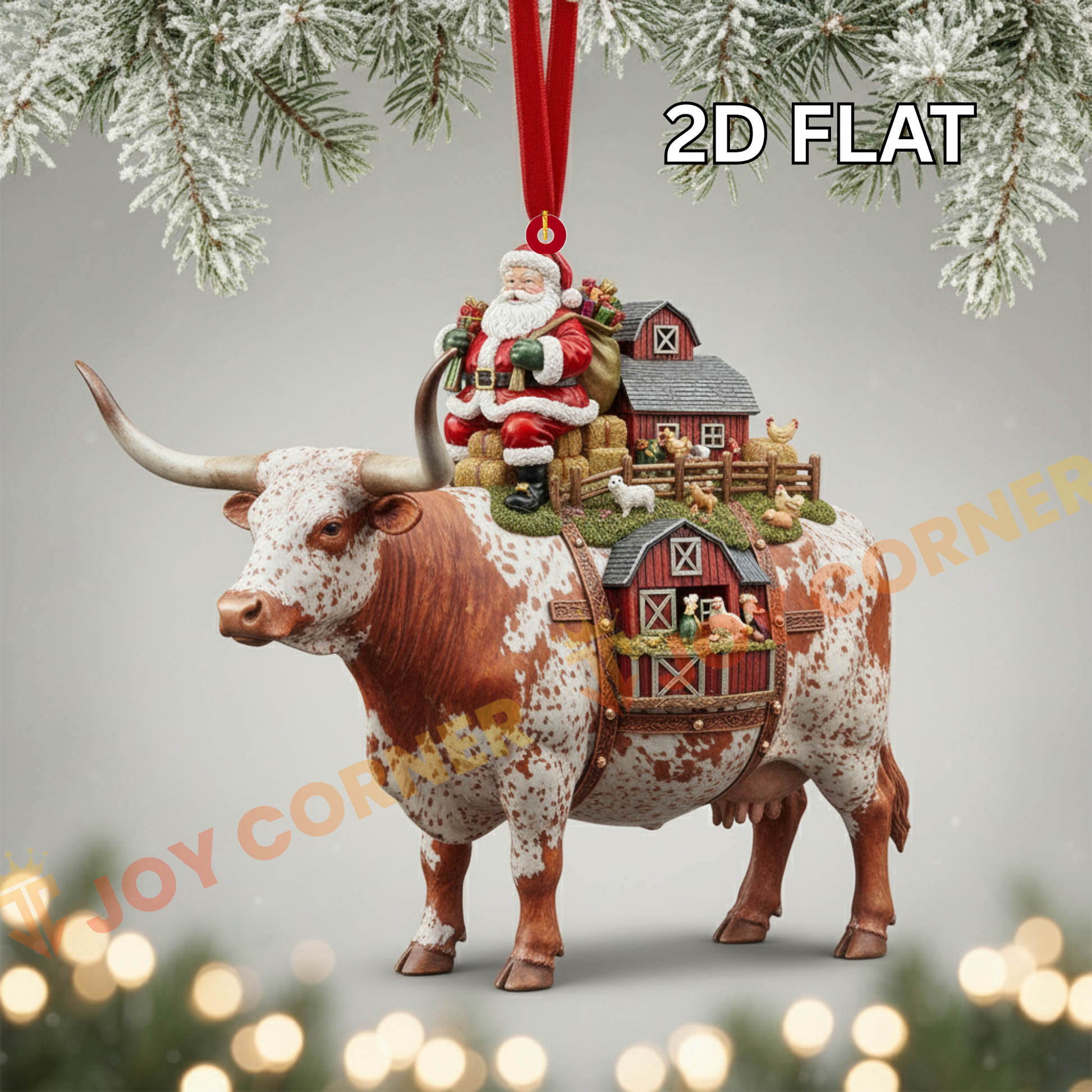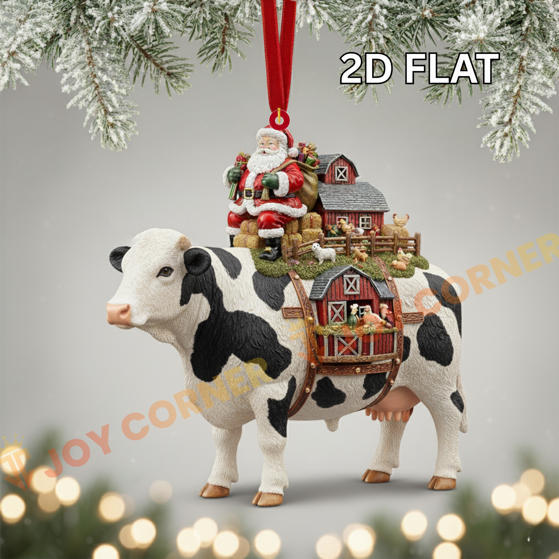 Joycorners Christmas Gifts Cow Carry Farm Ornament, Acrylic Ornament (8 Breed Options)