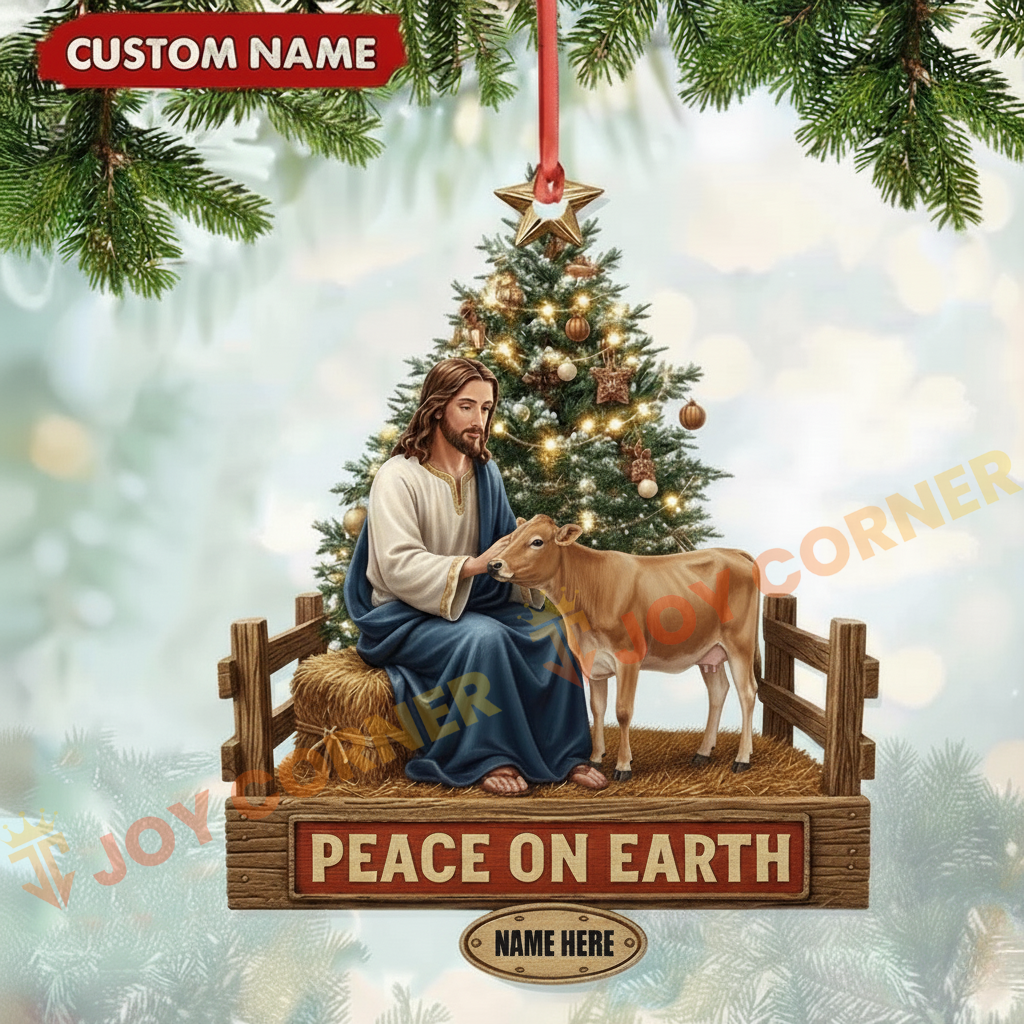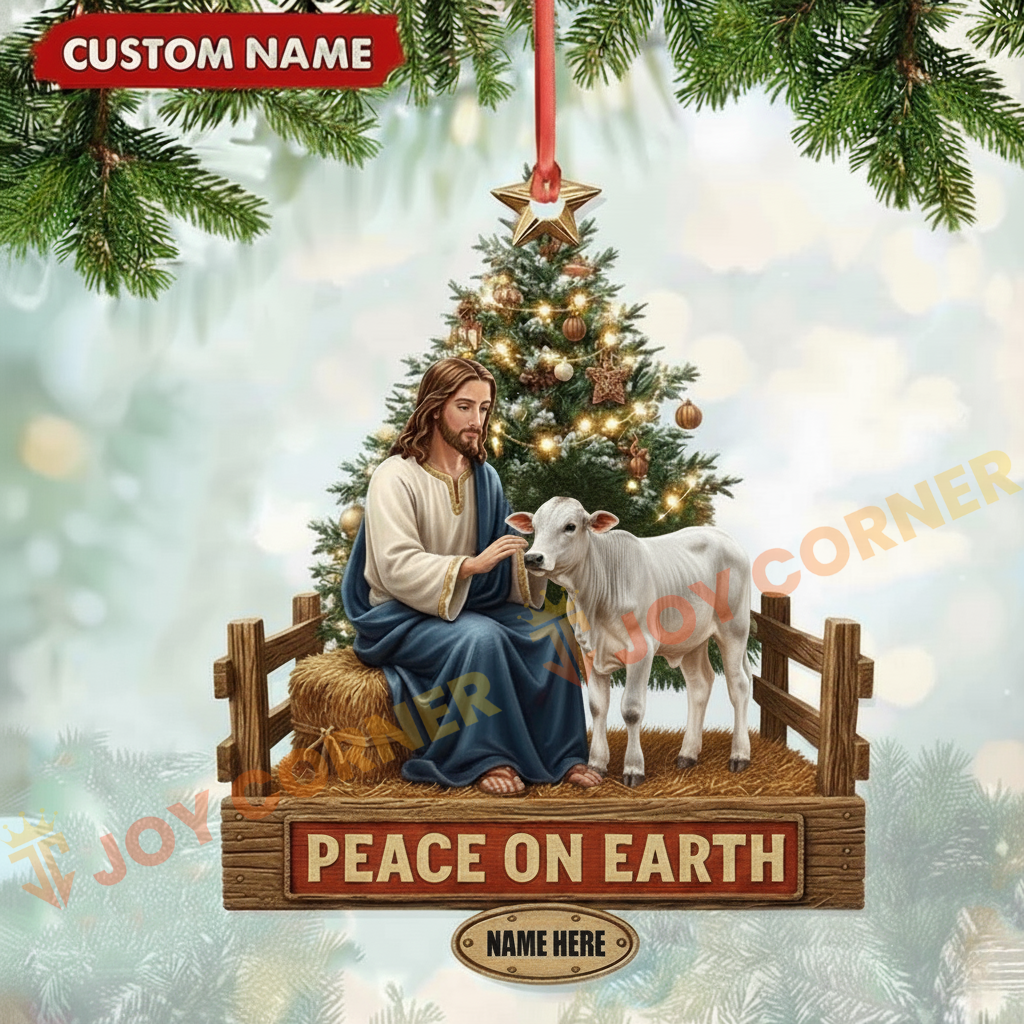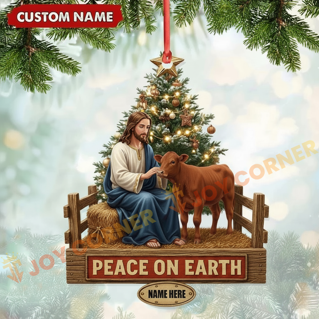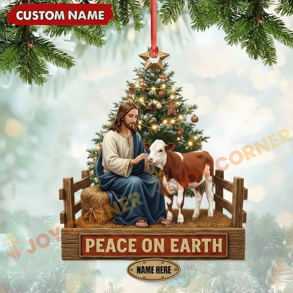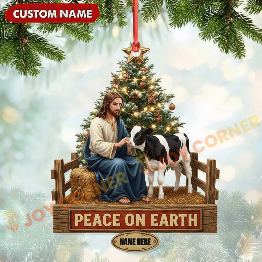 Joycorners Christmas Gifts Jesus & Cow Ornament, Custom Name Acrylic Ornament (10 Breed Options)