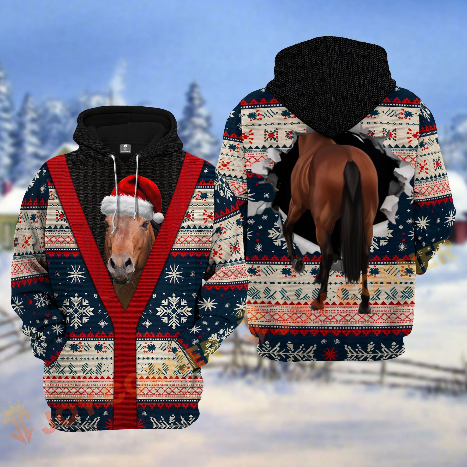 Joycorners Christmas Santa Cattle Ugly Sweater Pattern Personalized Name 3D Hoodie (8 Cattle Breeds)