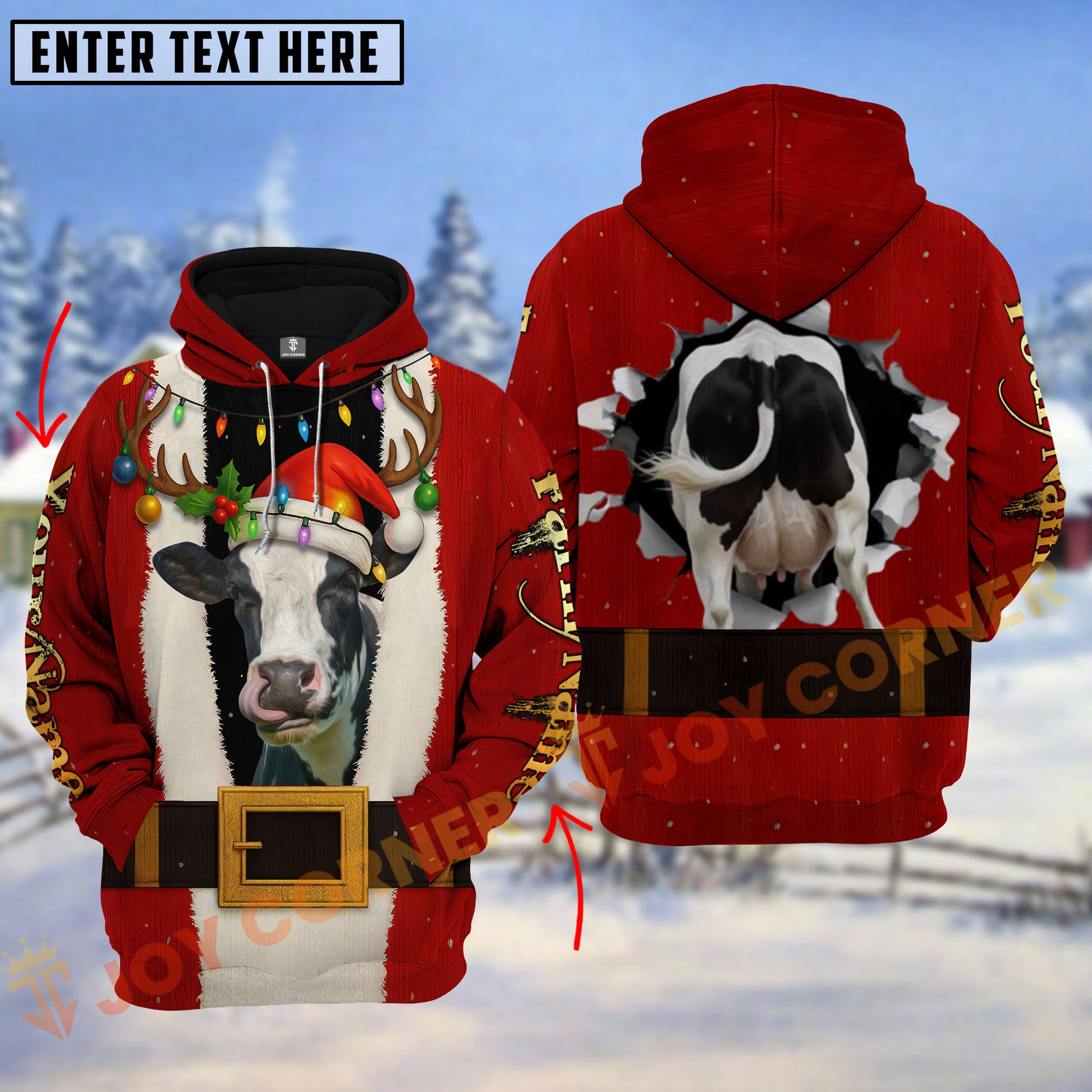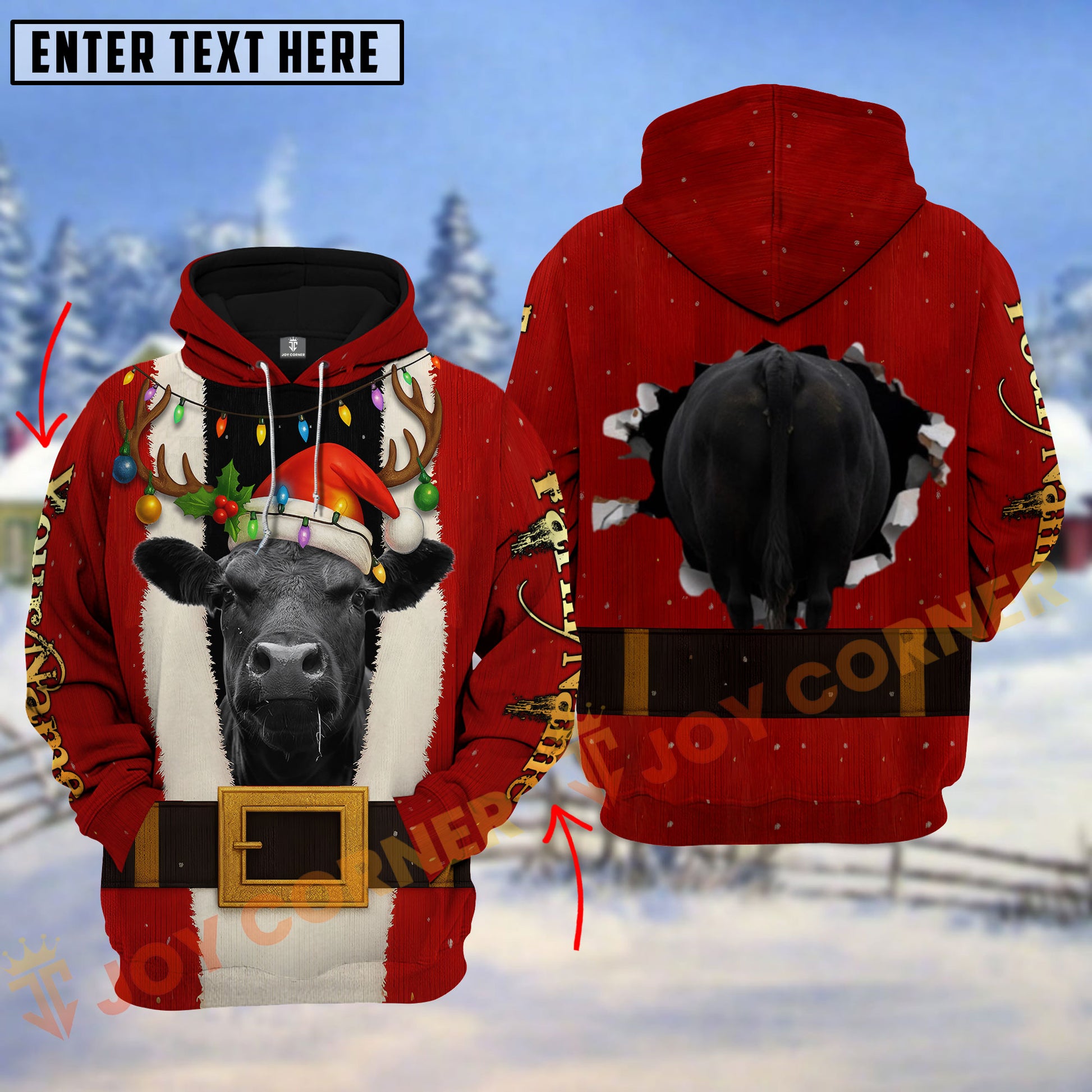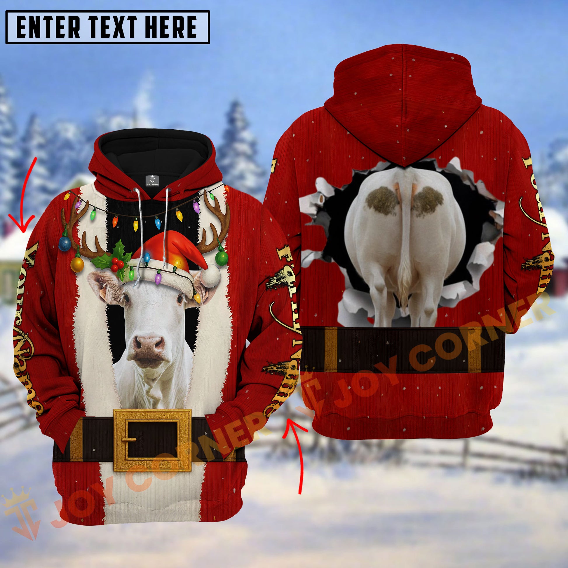 Joycorners Christmas Santa Cow Funny Design Personalized Name 3D Hoodie (8 Cattle Breeds)