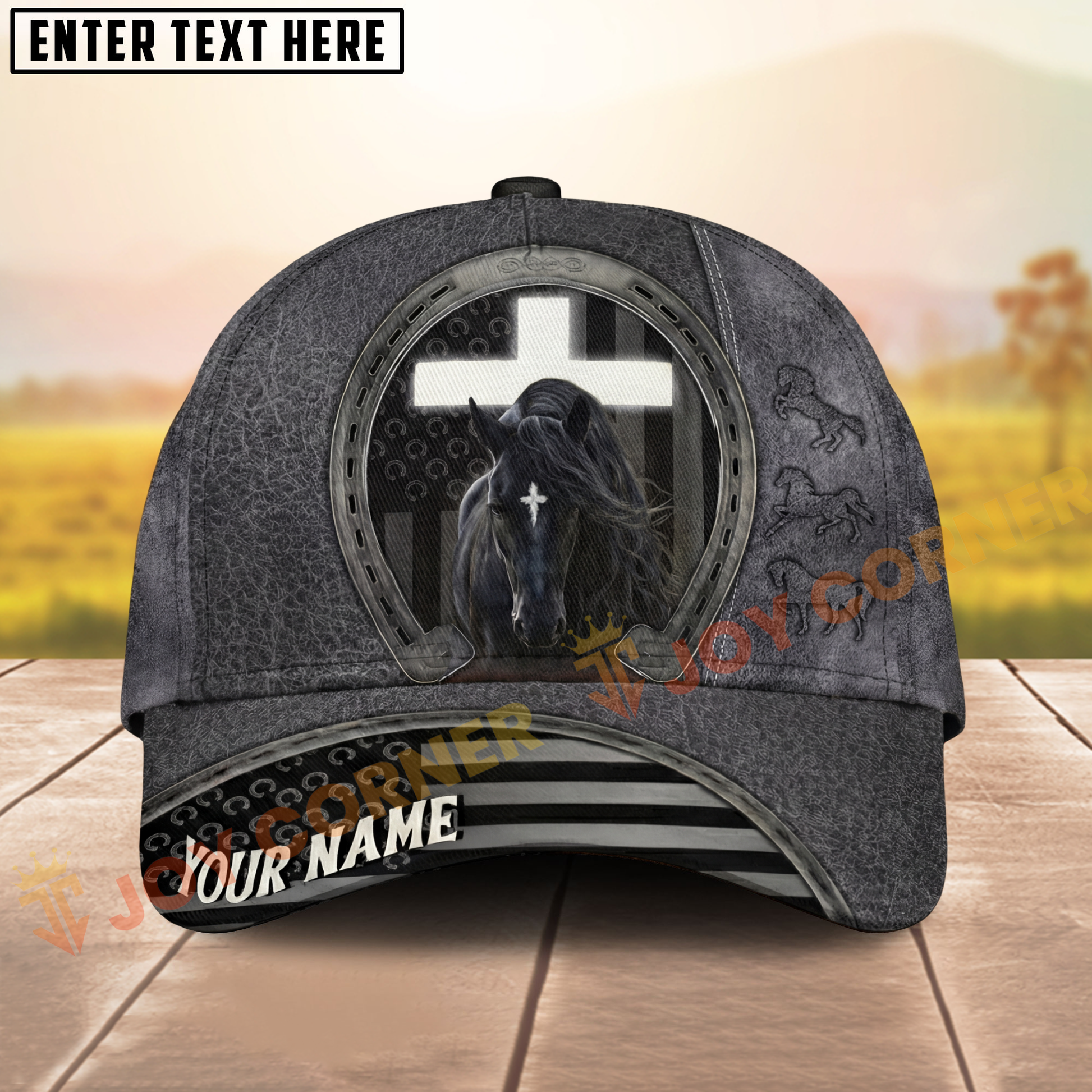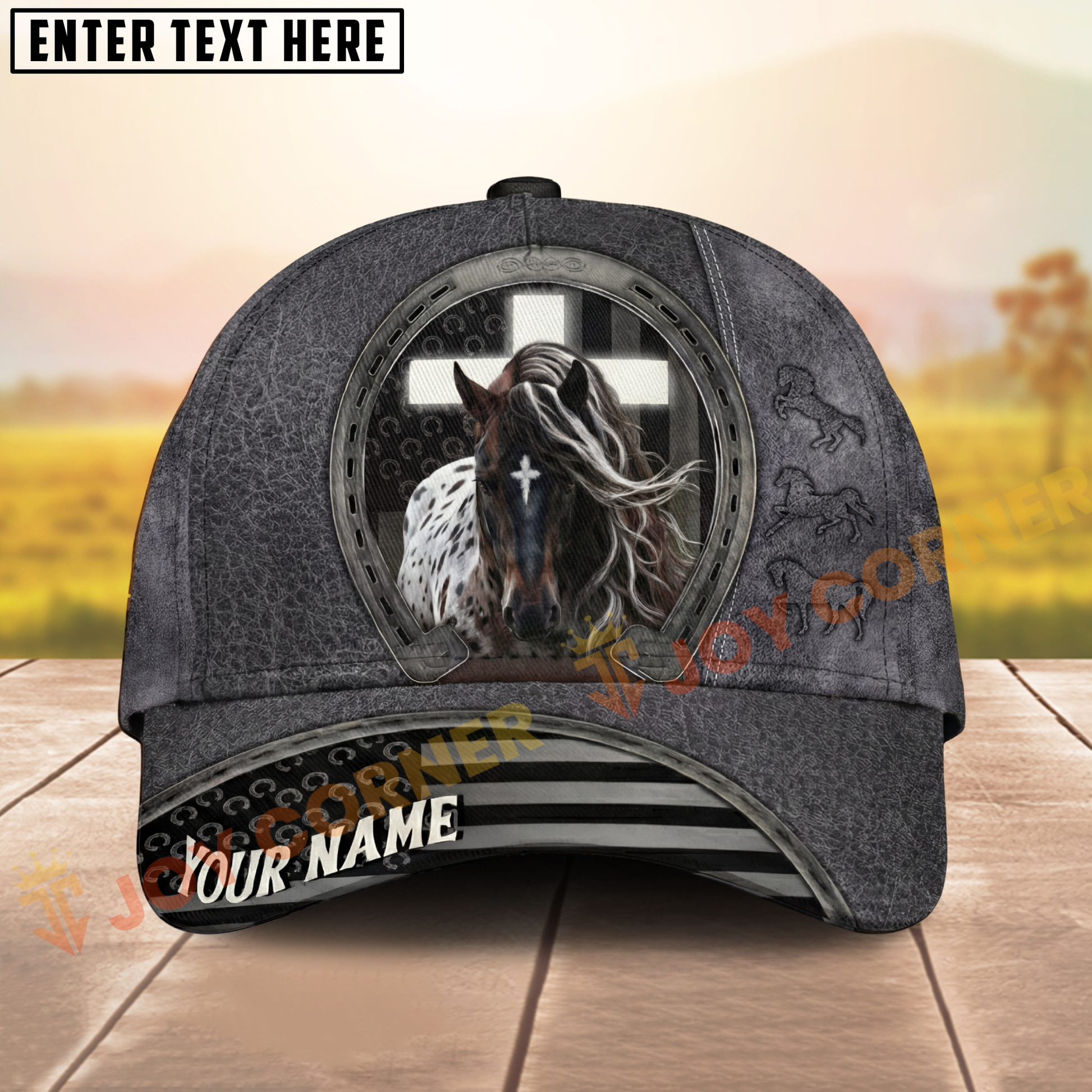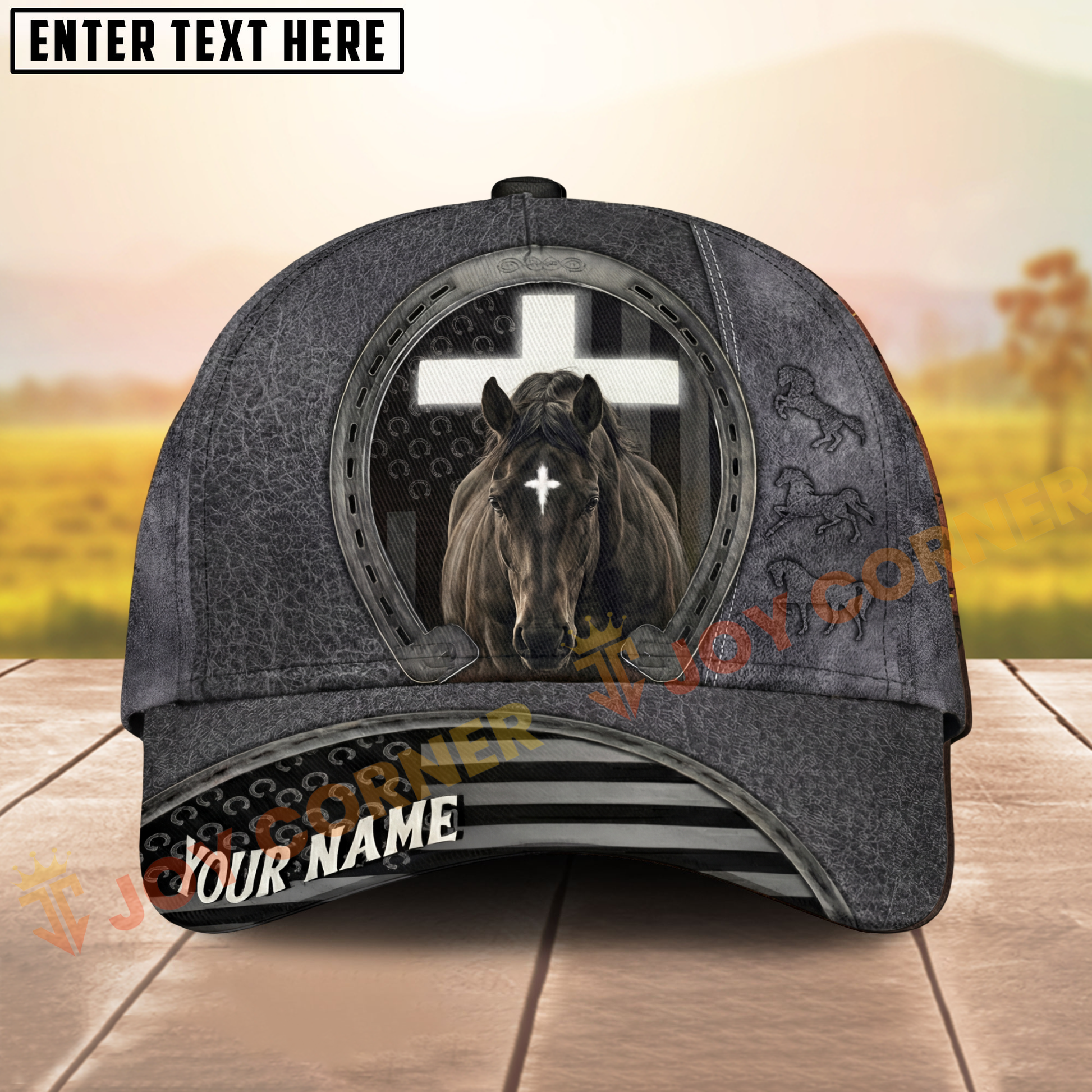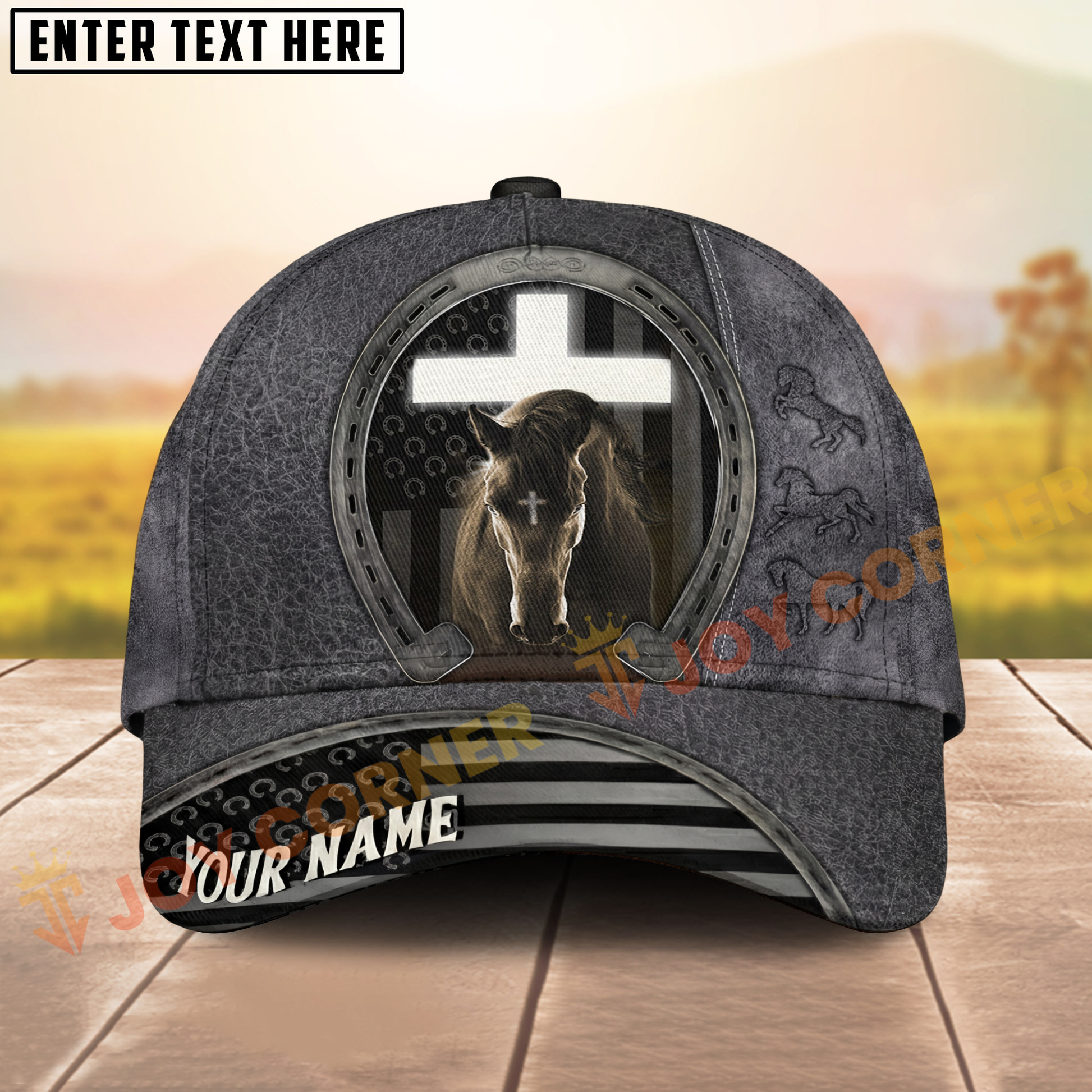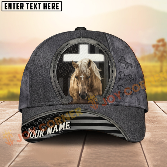 Joycorners Classic Christian Horse & Cross Embossed Western Style Personalized Name Cap (8 Breeds)