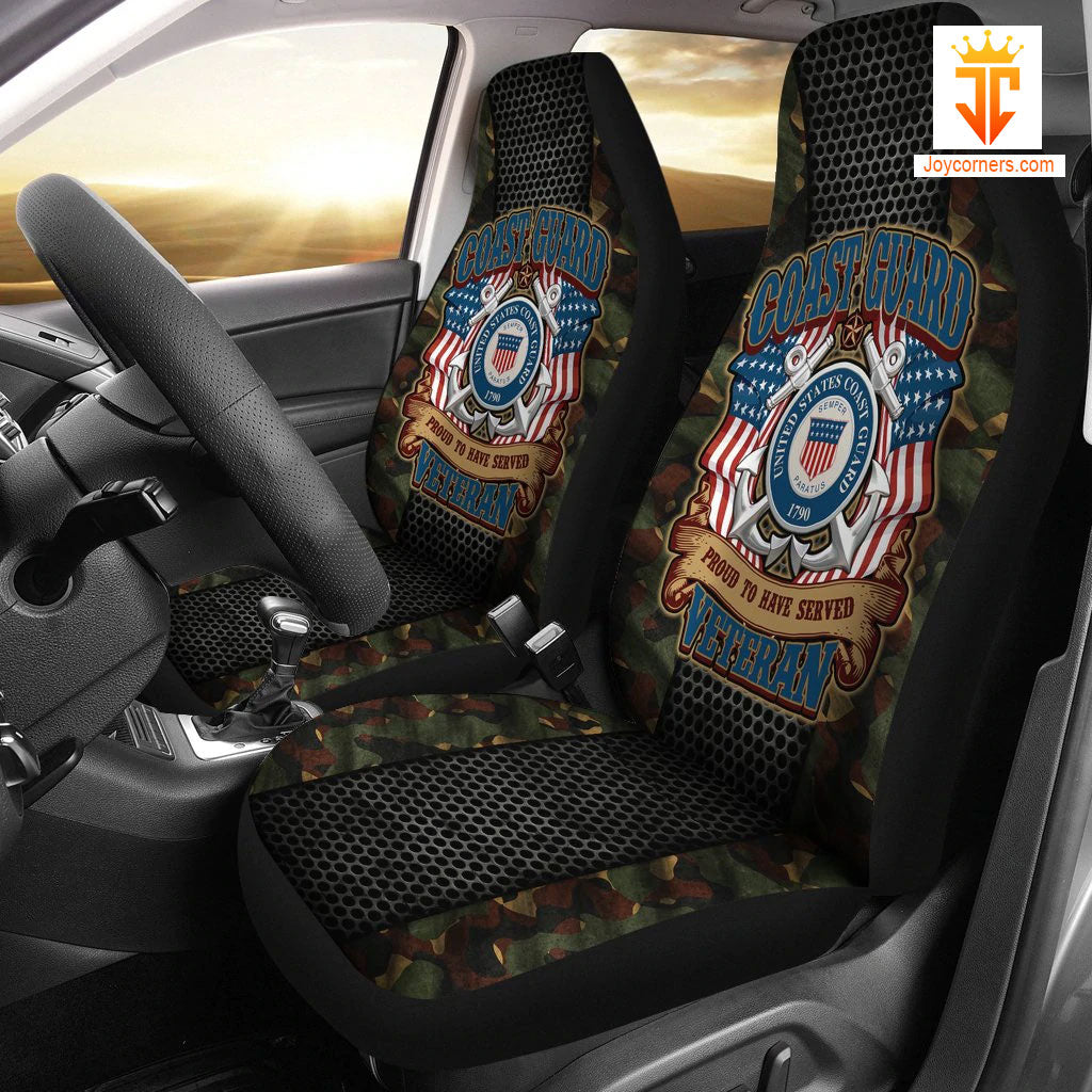 Joycorners Coast Guard Veteran Proud To Have Served C.S.C.G 1790 Green Camo Car Seat Cover Set (2Pcs)