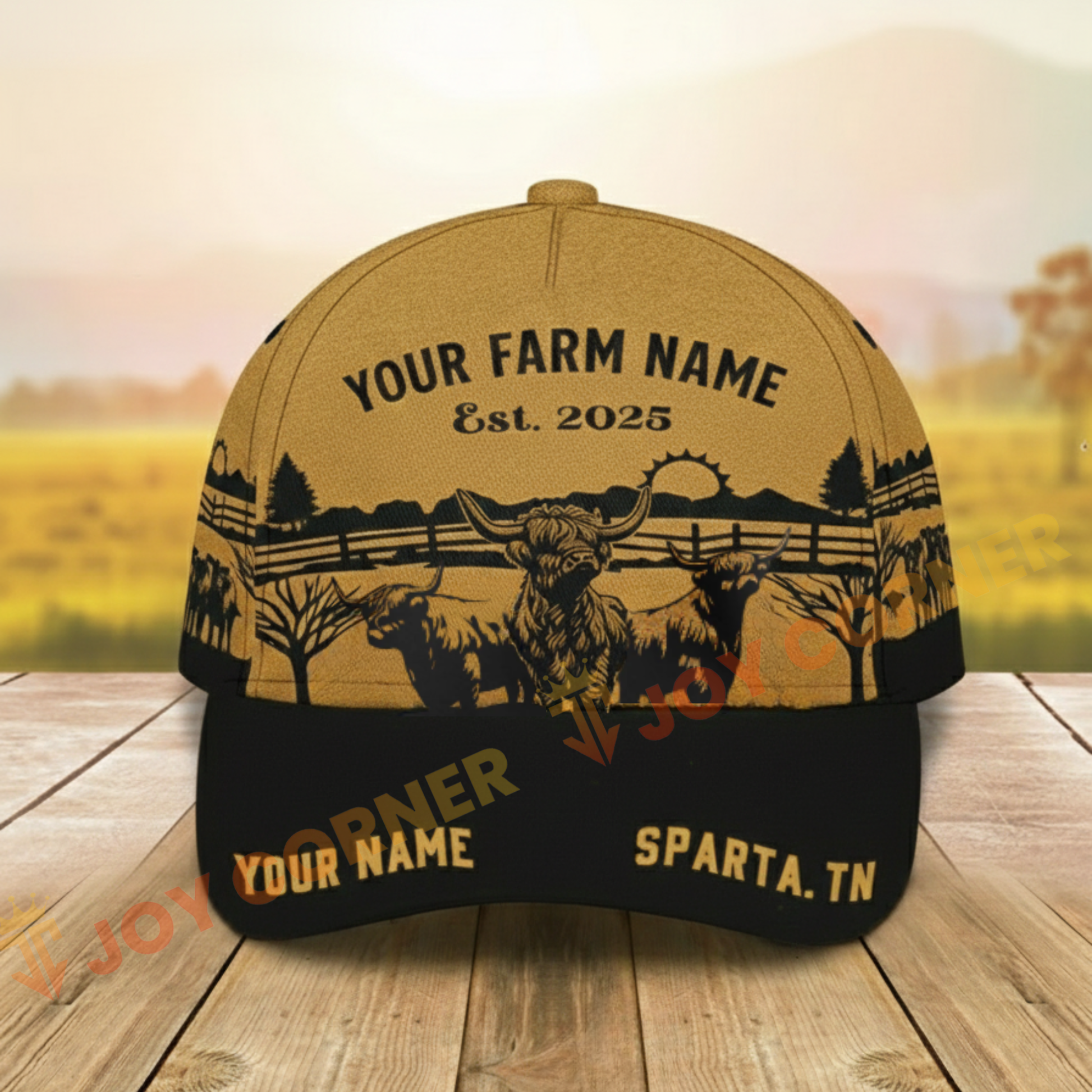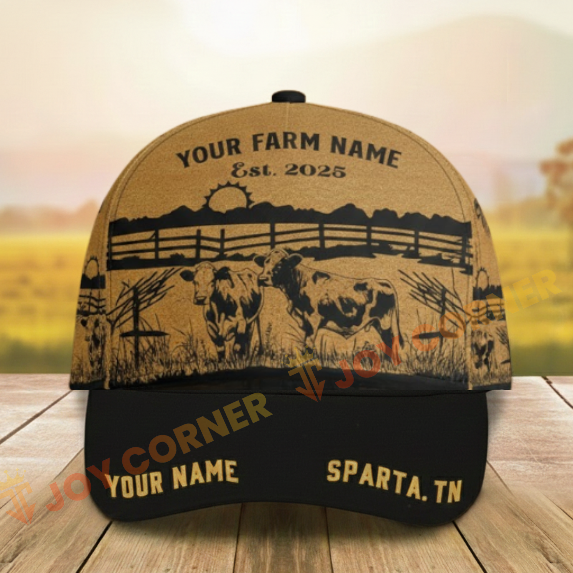 Joycorners Coir Pattern Farm&Cows, Custom Name Cattle Cap (5 Cattle Breeds)