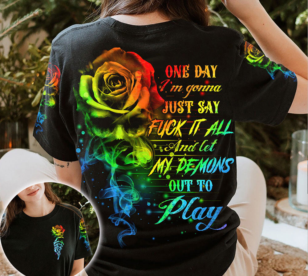 Joycorners Colorful Rose Let My Demons Out To Play All Over Printed 3D Shirts