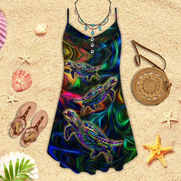 Joycorners Colorful Turtles 2 All Printed 3D Spaghetti Strap Summer Dress