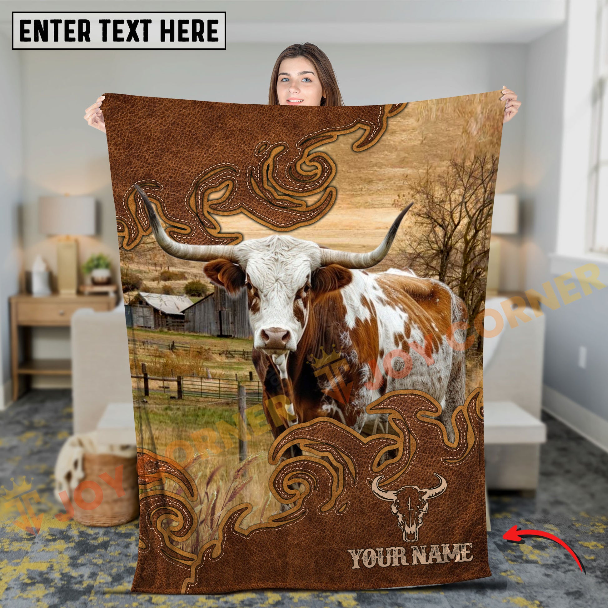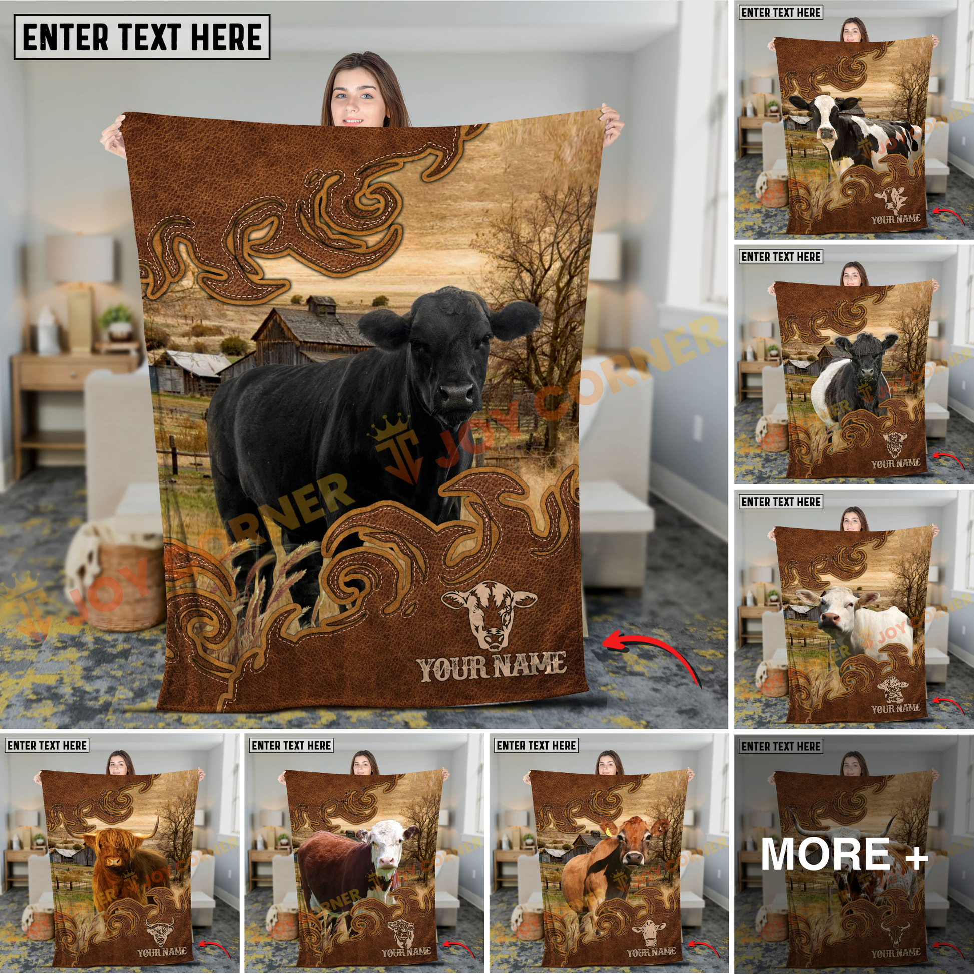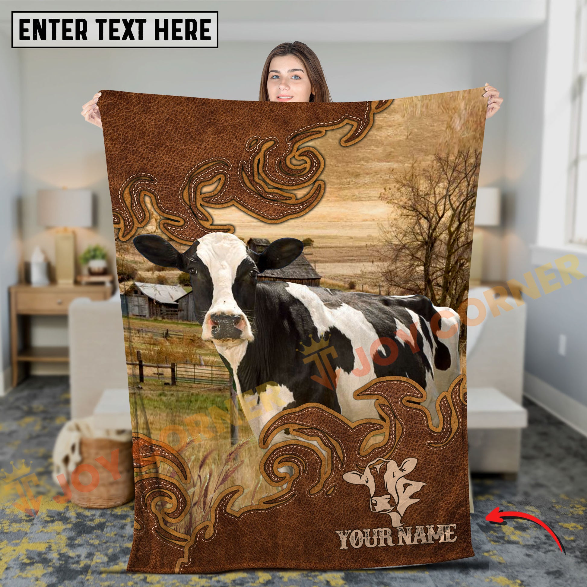 Joycorners Cow Blanket Farm Rustic Leather Western Art Personalized Name 3D Blanket (10 Breeds)