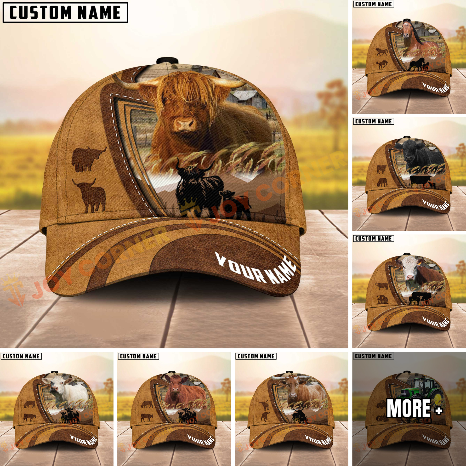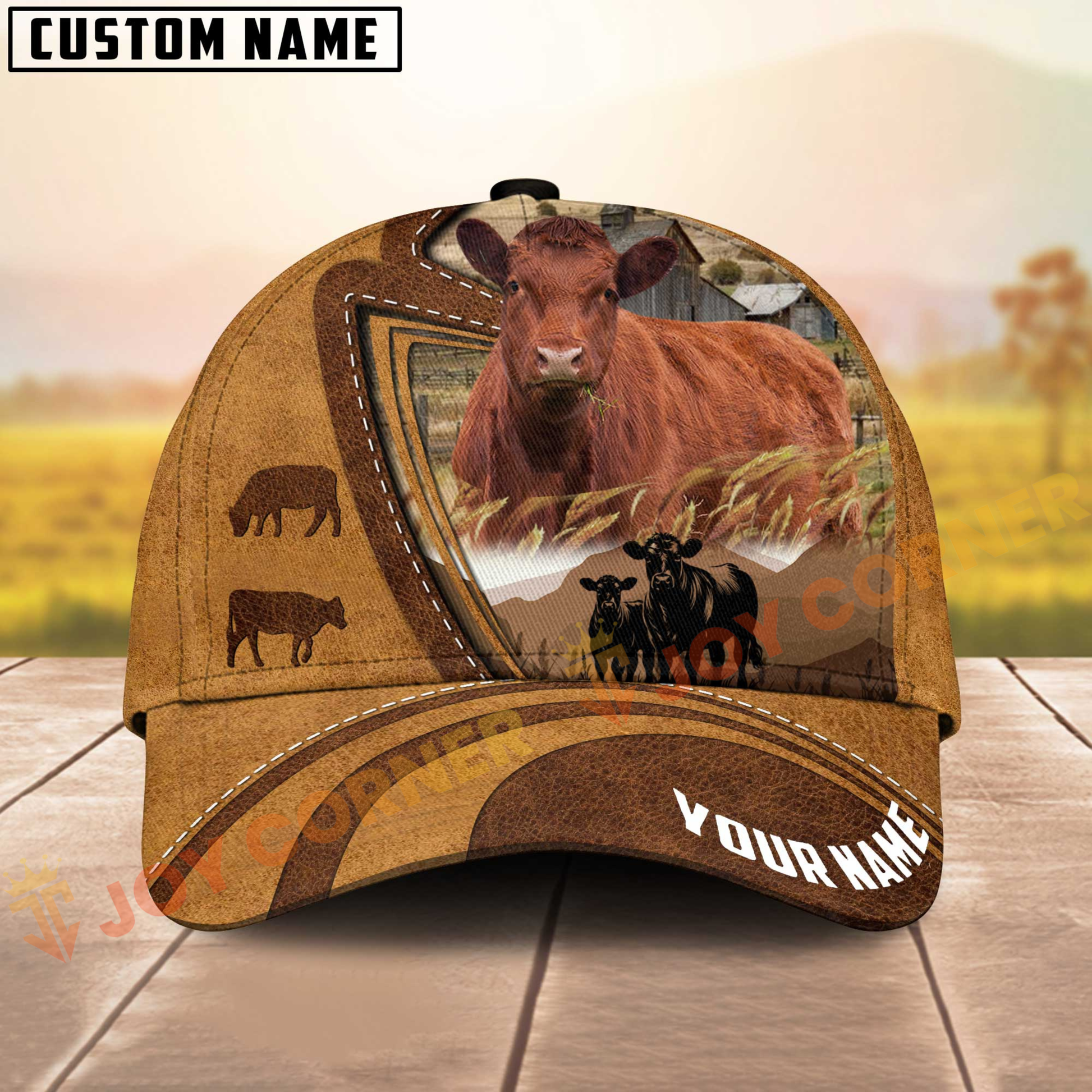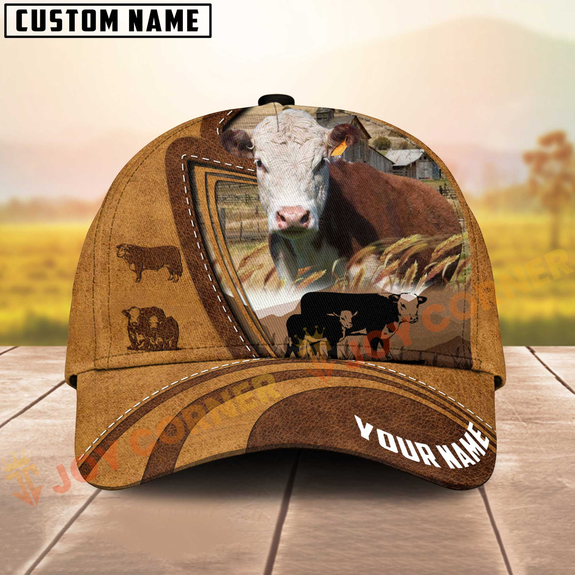 Joycorners Cow Brown Leather Farm Personalized Name 3D Hat