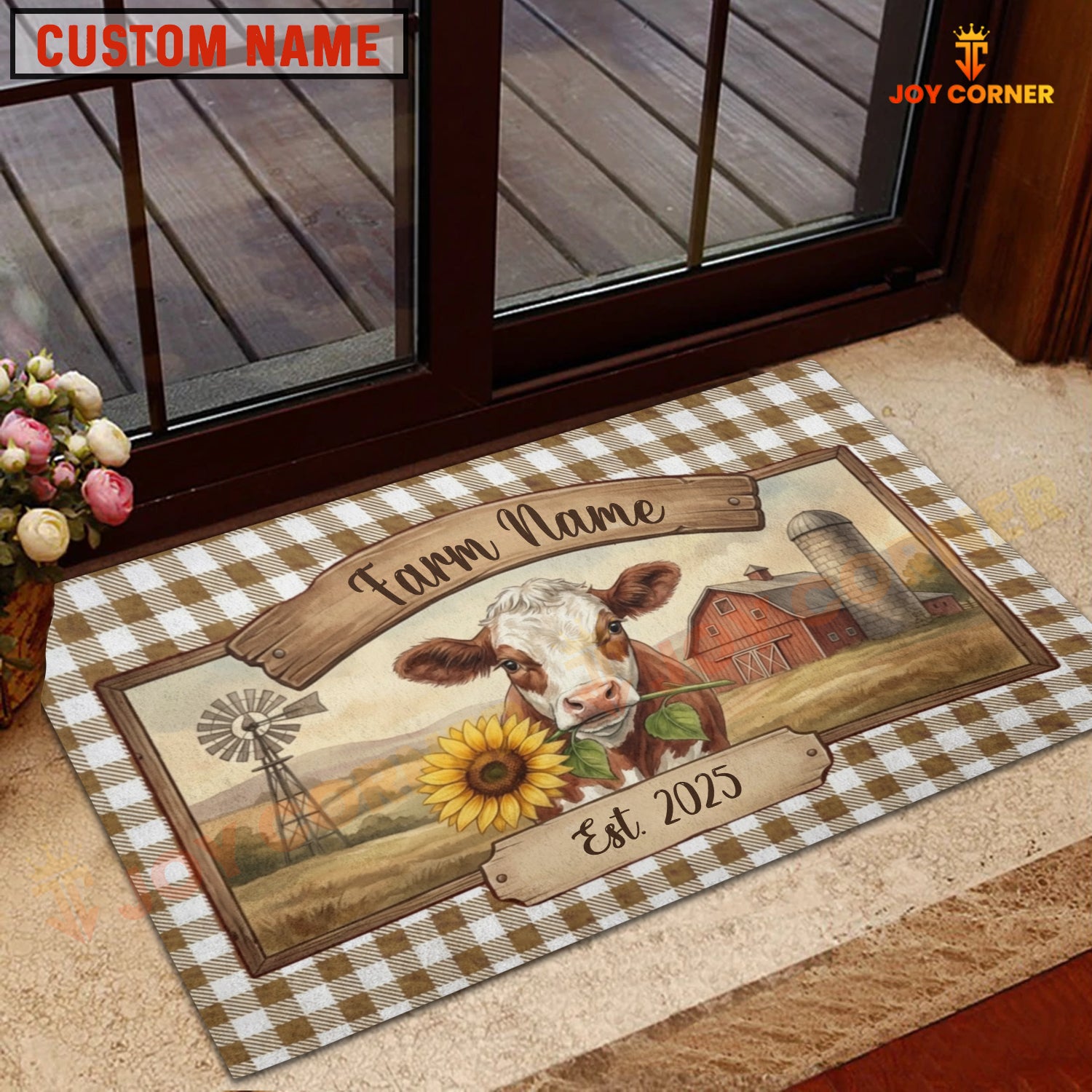 Joycorners Cow Farm Name Sunflower Rustic Barn Doormat (10 Cattle Breeds)