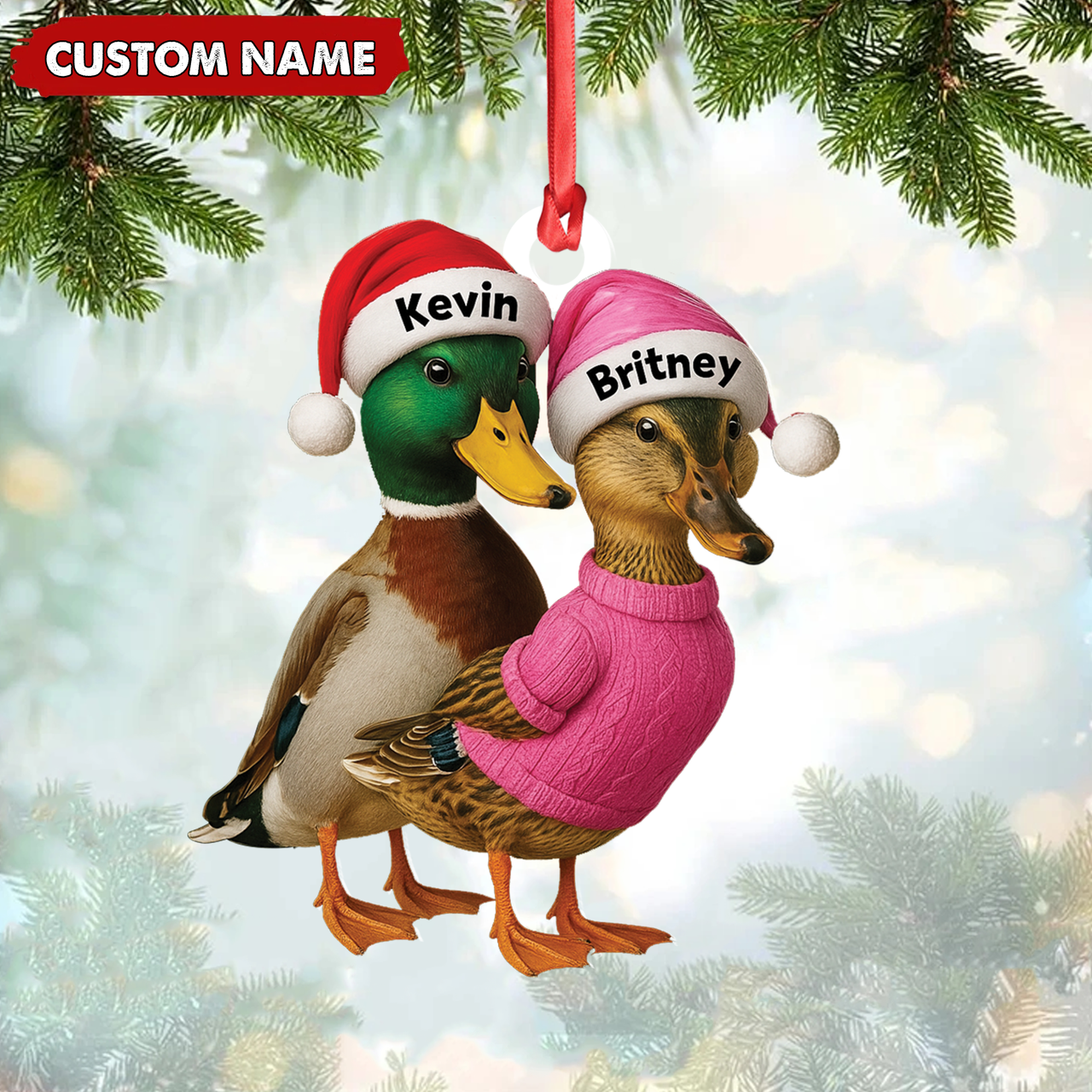 Joycorners Custom Funny Duck Couple Christmas Ornament – Personalized Names, Custom Gift for Couples & Animal Lovers MT1111