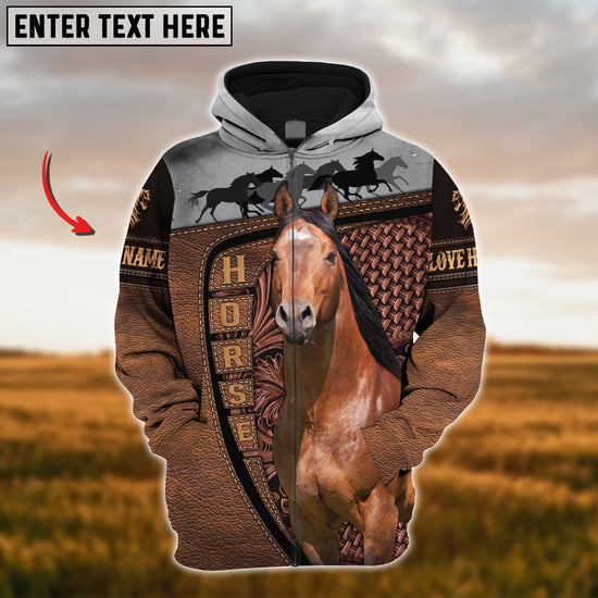 Joycorners Custom Name American Quarter Horse Carving Leather Pattern 3D Hoodie
