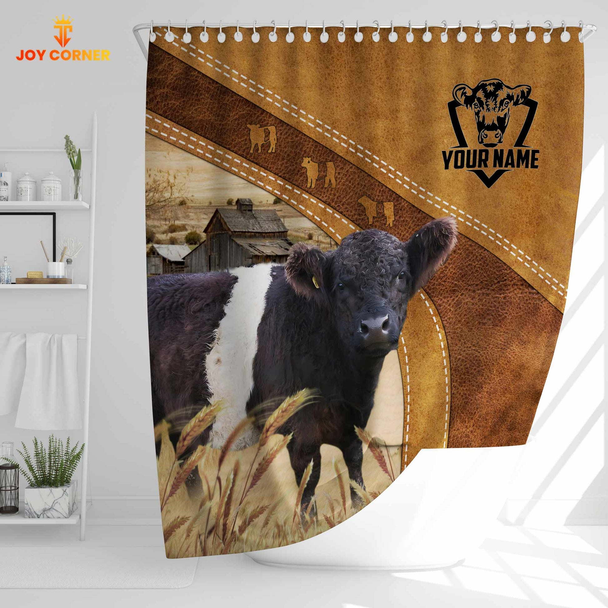 Joycorners Custom Name Belted Galloway Pattern Shower Curtain