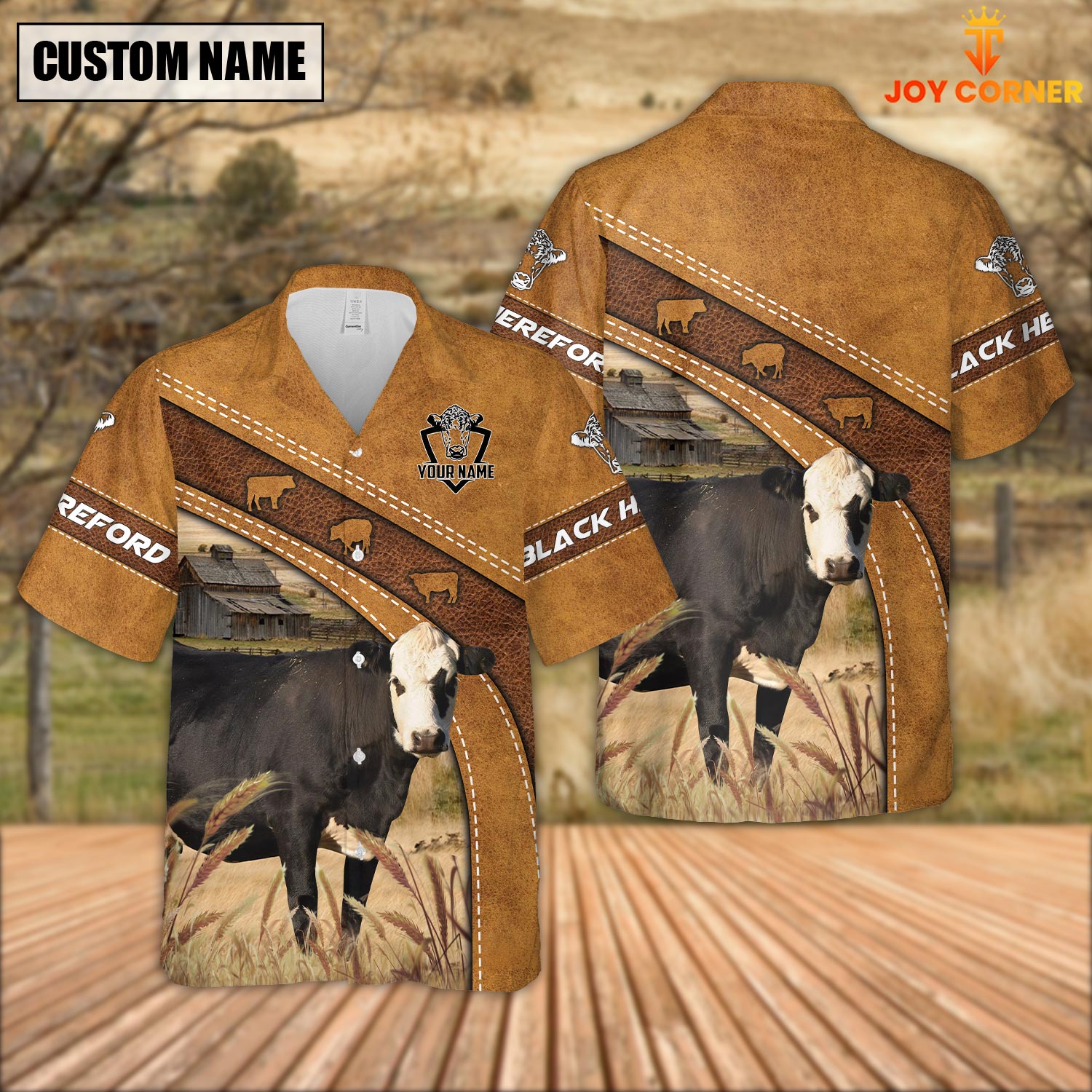 Joycorners Custom Name Black Hereford Leather Pattern Hawaiian Shirt