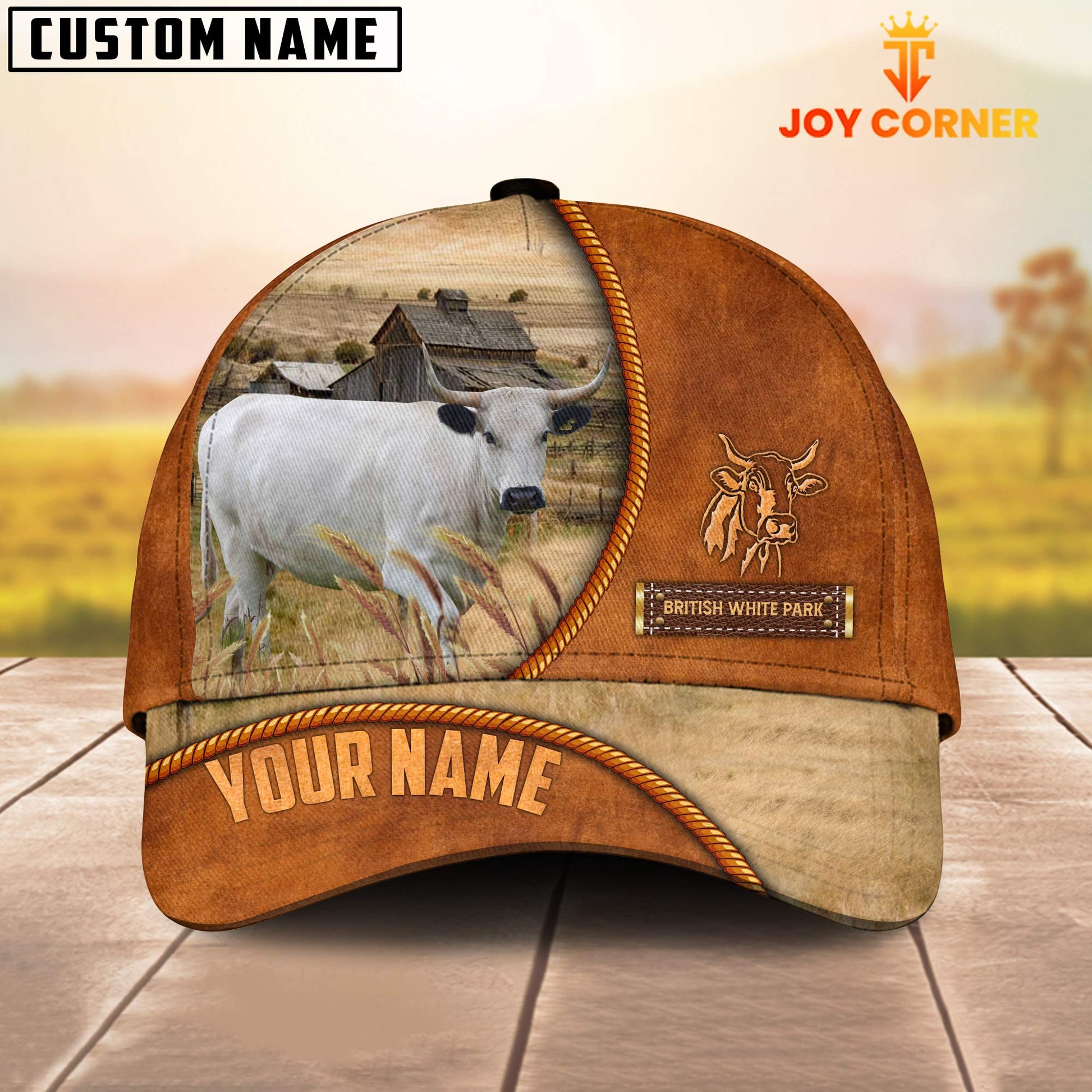 Joycorners Custom Name British White Park Leather Pattern Cap