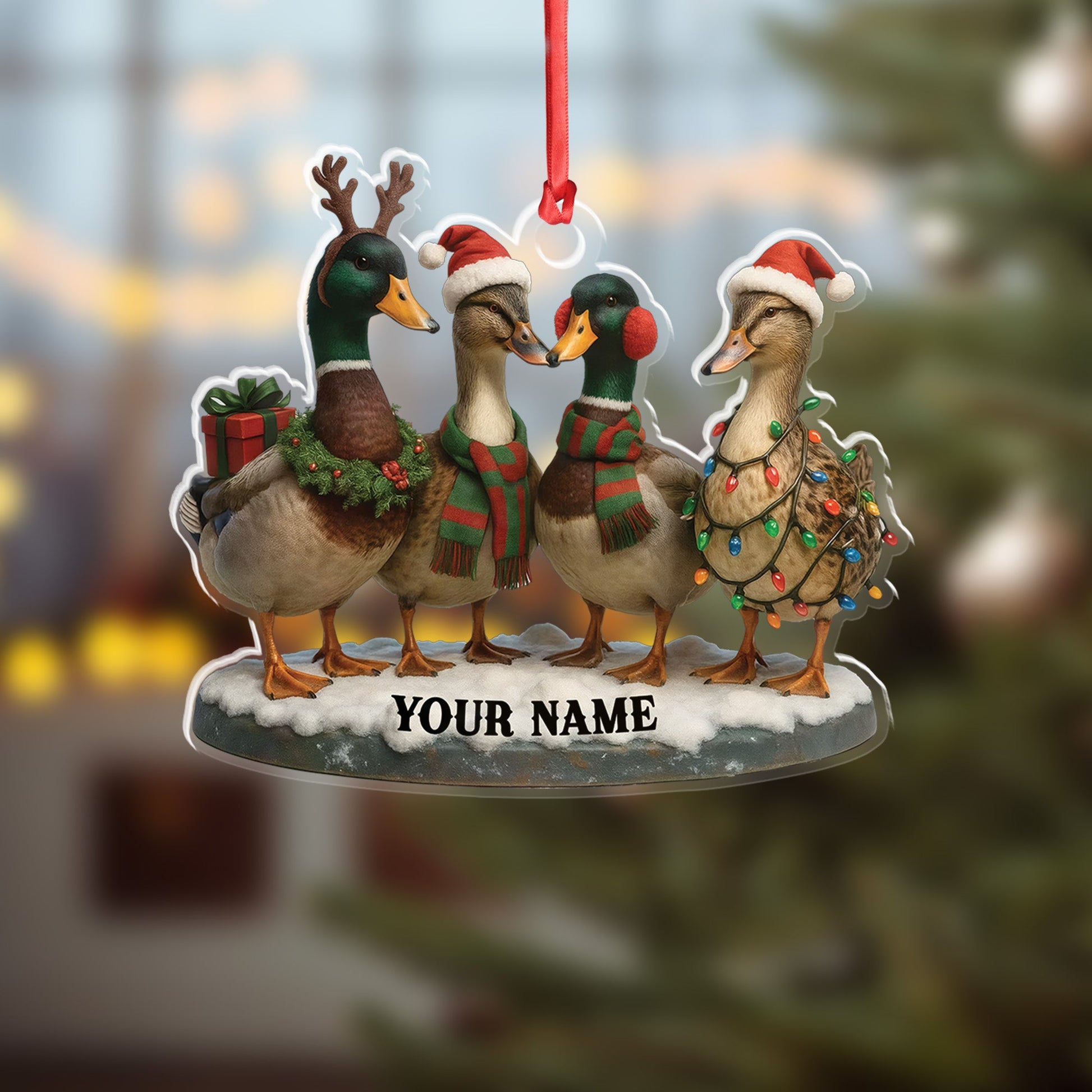 Joycorners Custom Name Duck Family Ornament, Mallard Christmas Decor MT1111