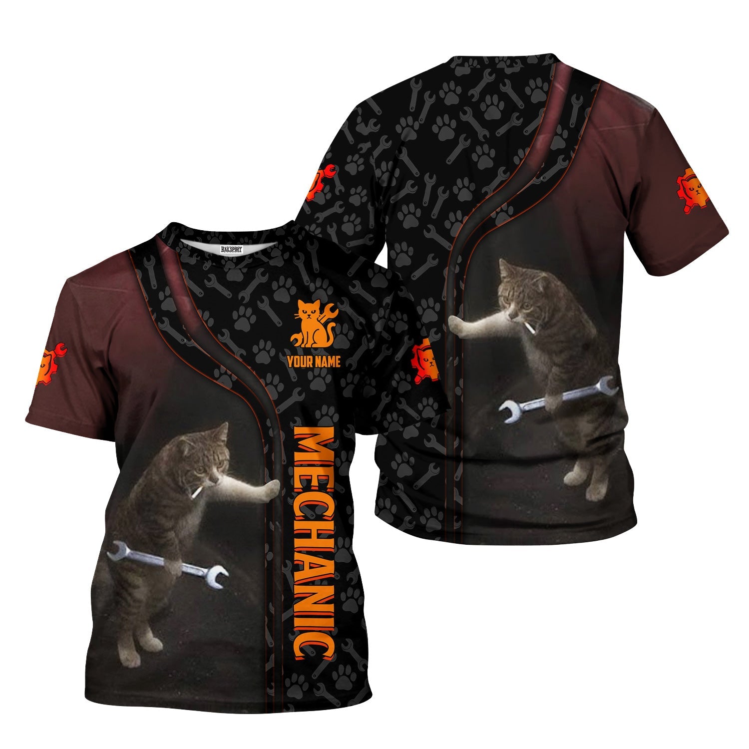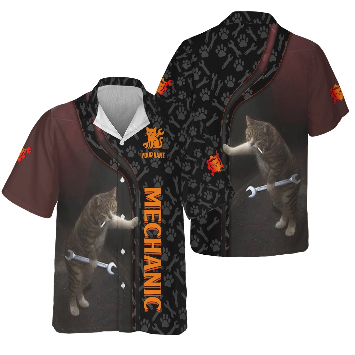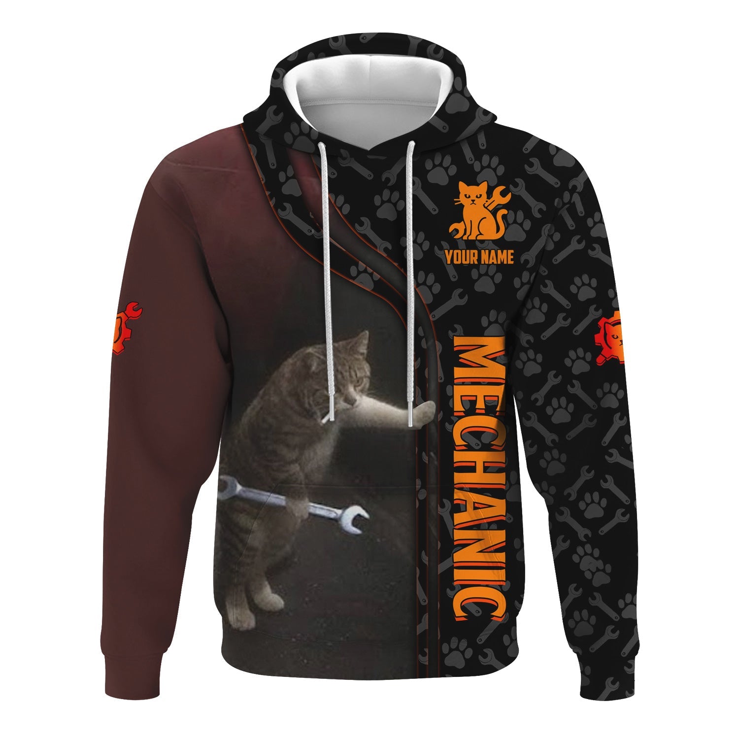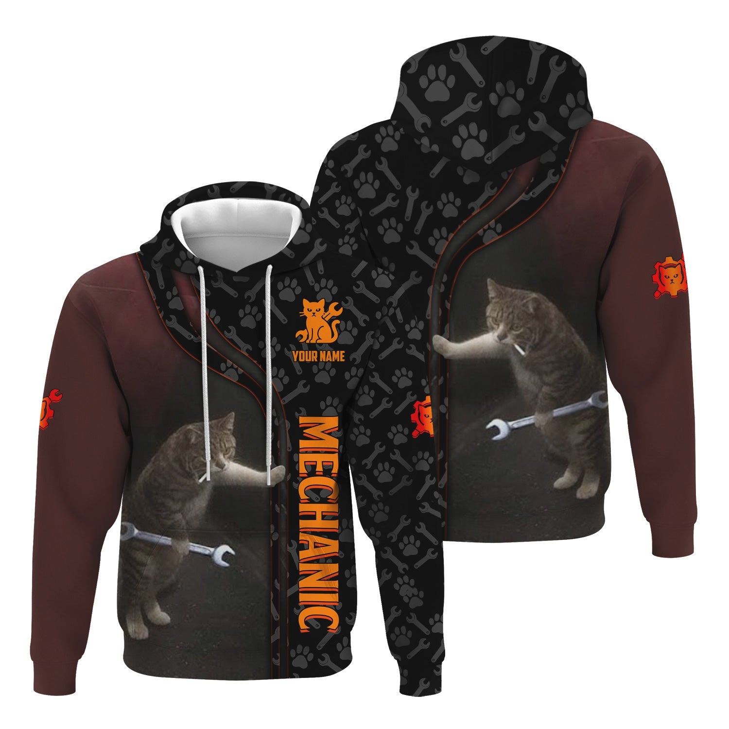 Joycorners Custom Name Funny Cat Mechanic Shirt With Cat Paw And Wrench Hoodie Jacket For Mechanic PT2609