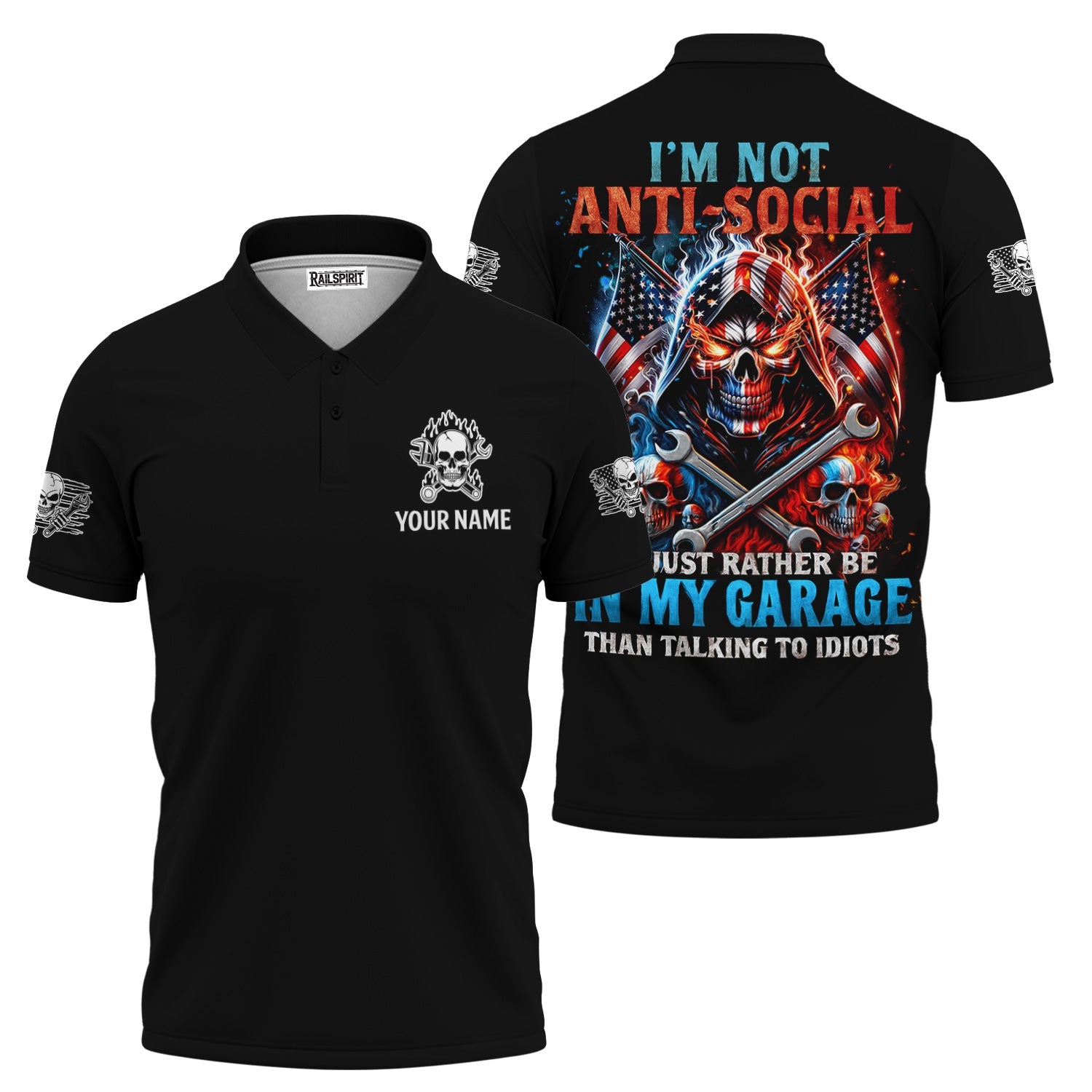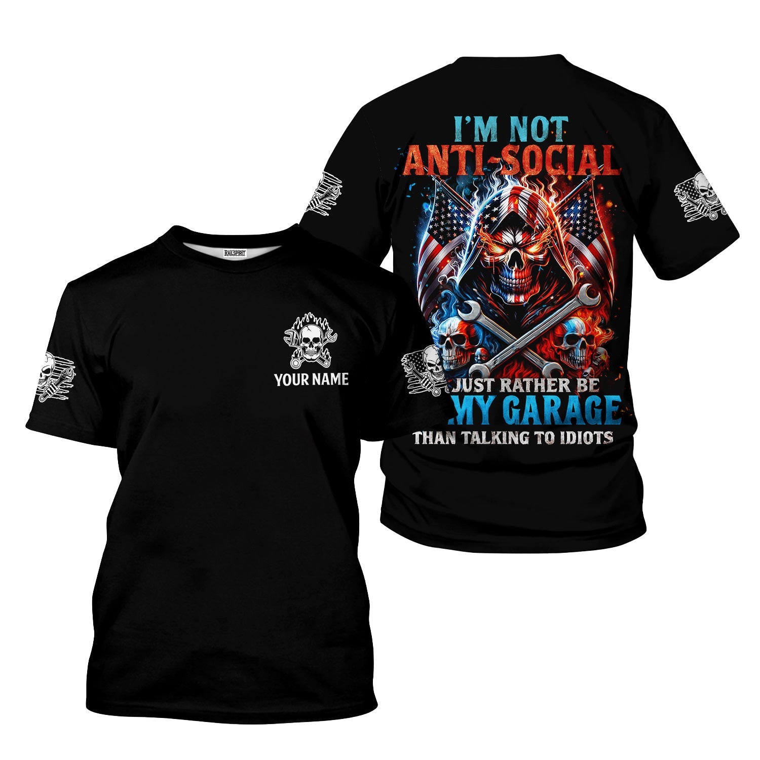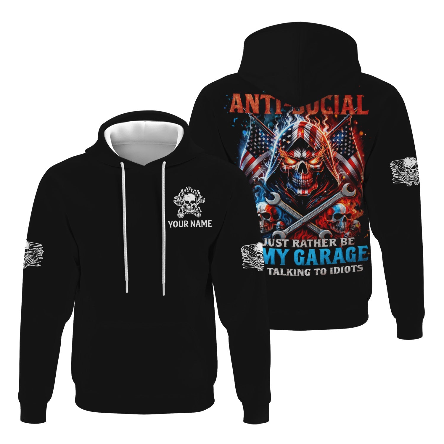 Joycorners Custom Name Funny Mechanic Shirt I'd Just Rather Be In My Garage Than Talking to Idiots Hoodie Jacket For Mechanic PT2609