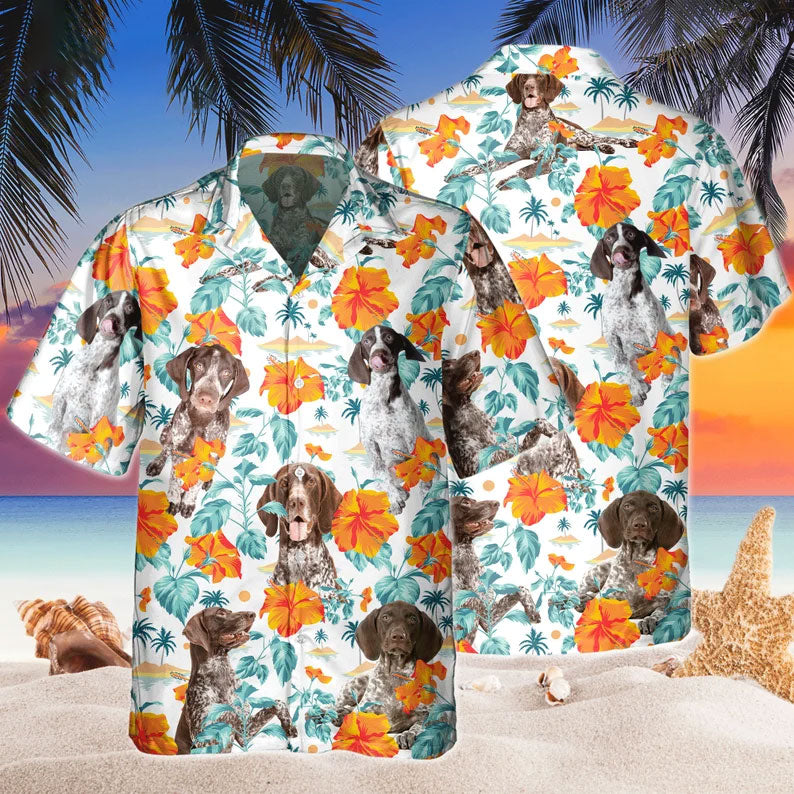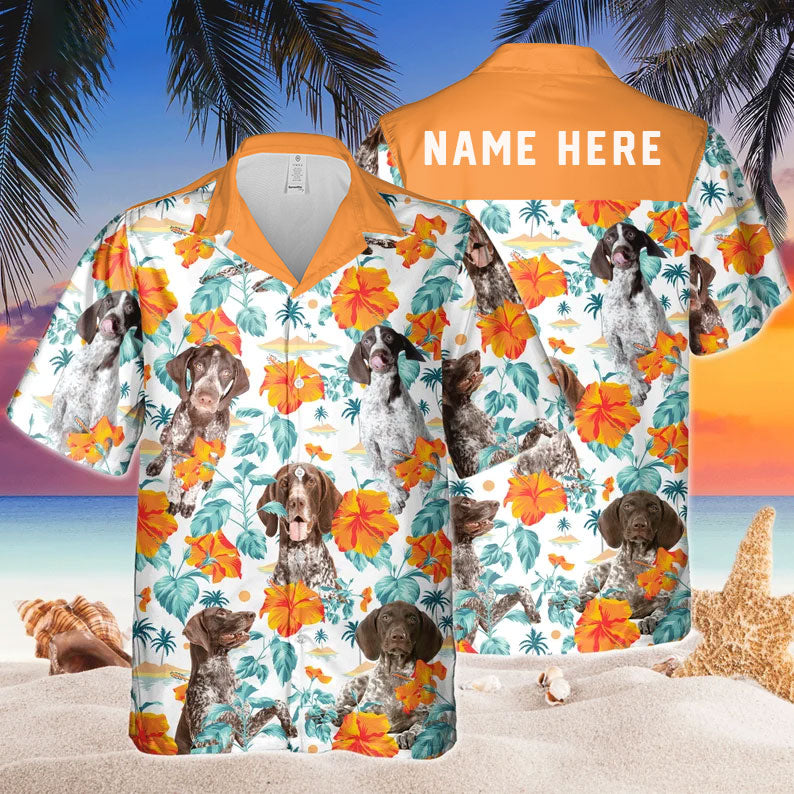 Joycorners Custom Name German Shorthaired Hibiscus Flowers All 3D Printed Hawaiian shirt