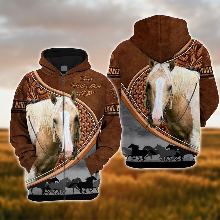 Joycorners Custom Name Horse Never Walk Alone 3D Hoodie