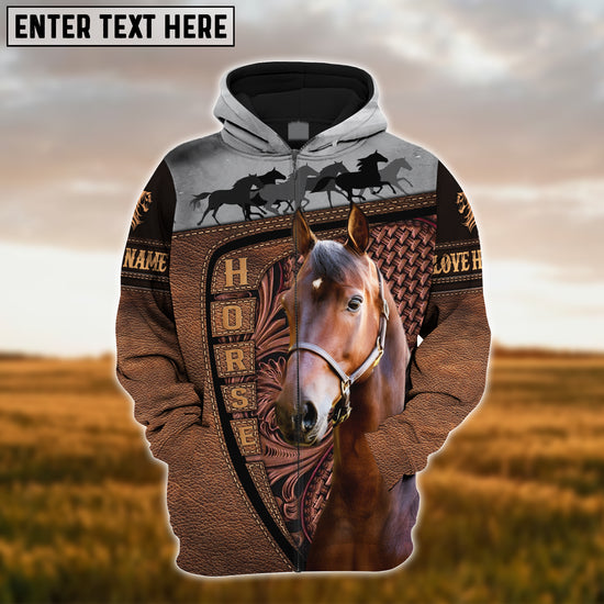 Joycorners Custom Name Morgan Horse Carving Leather Pattern 3D Hoodie