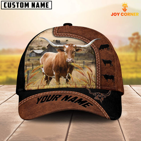 Joycorners Custom Name Texas Longhorn Brown Black Leather Pattern Cap