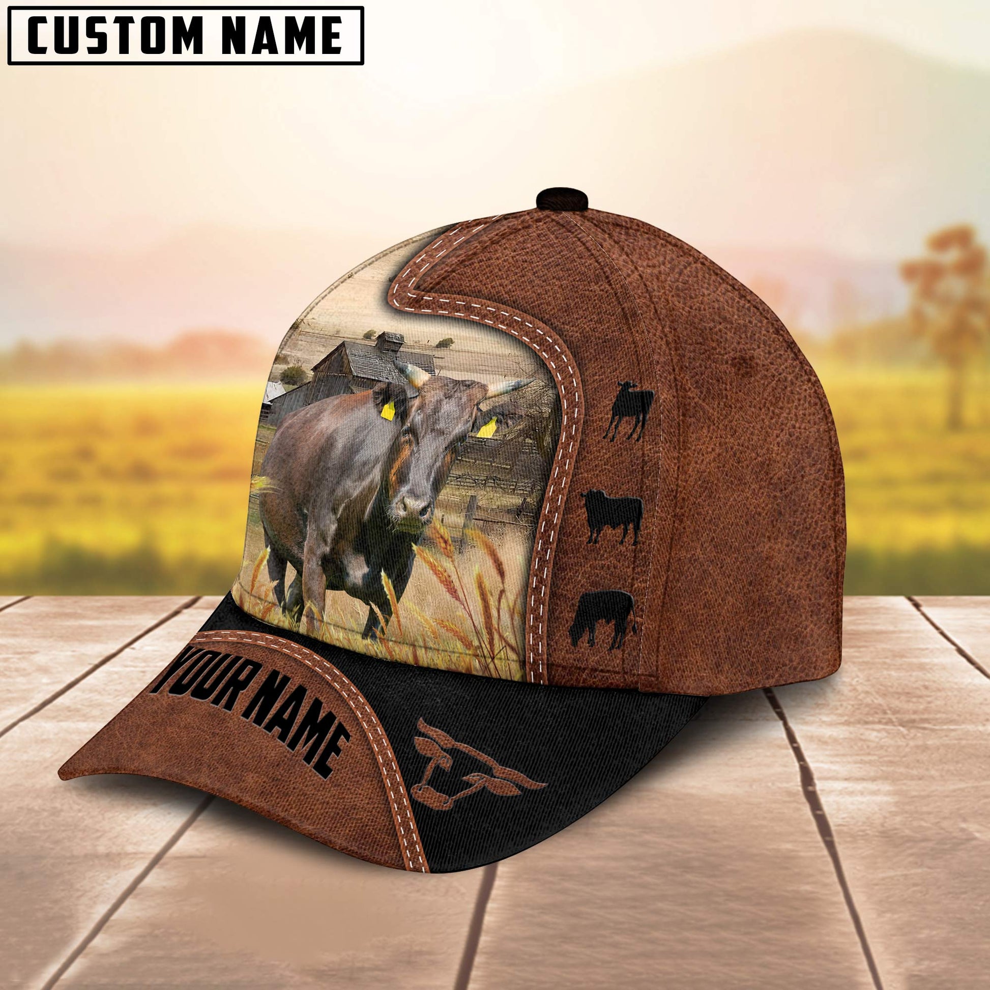 Joycorners Custom Name Wagyu Brown Black Leather Pattern Cap