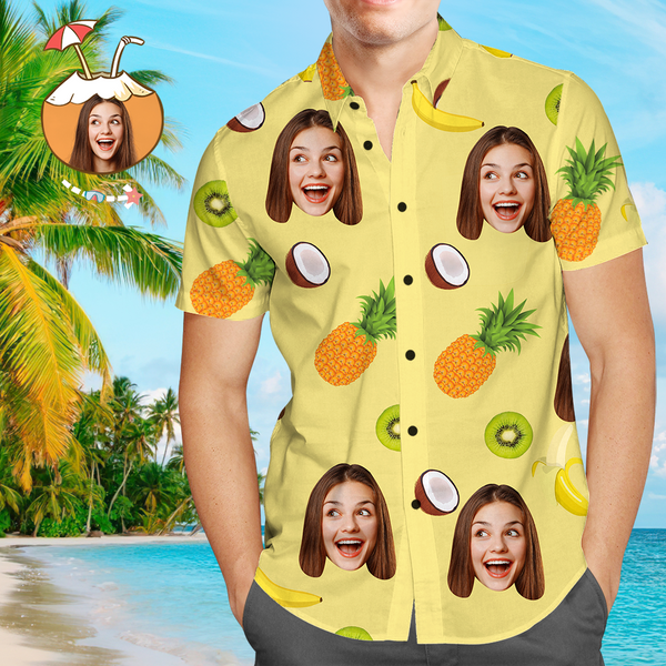 Joycorners Custom Photo Banana Pineapple Kiwi All Over Printed 3D Hawaiian Shirt