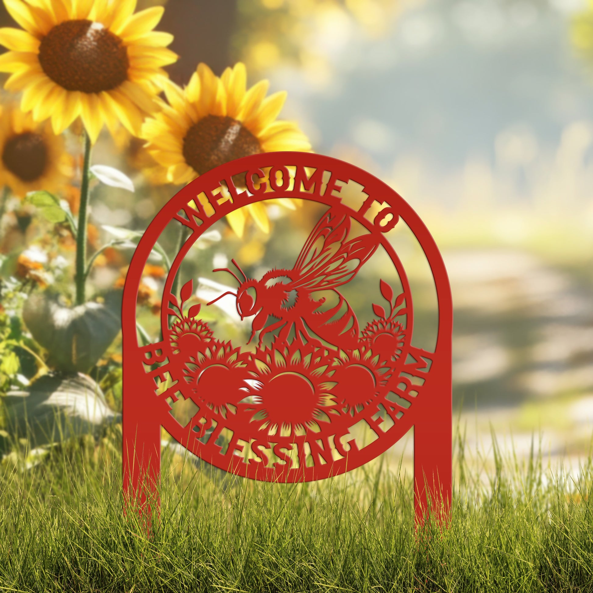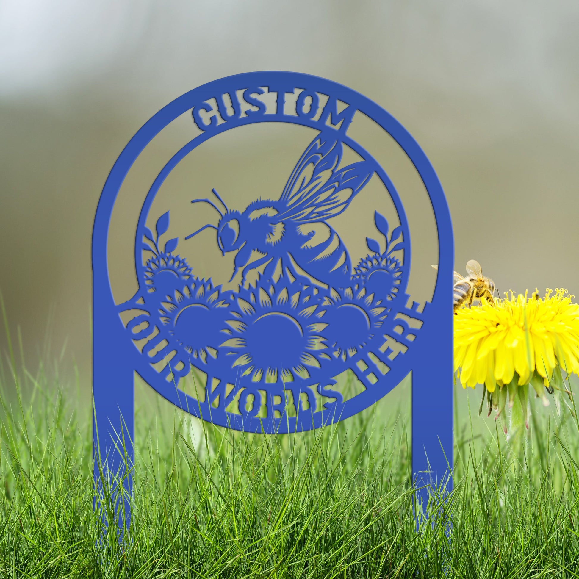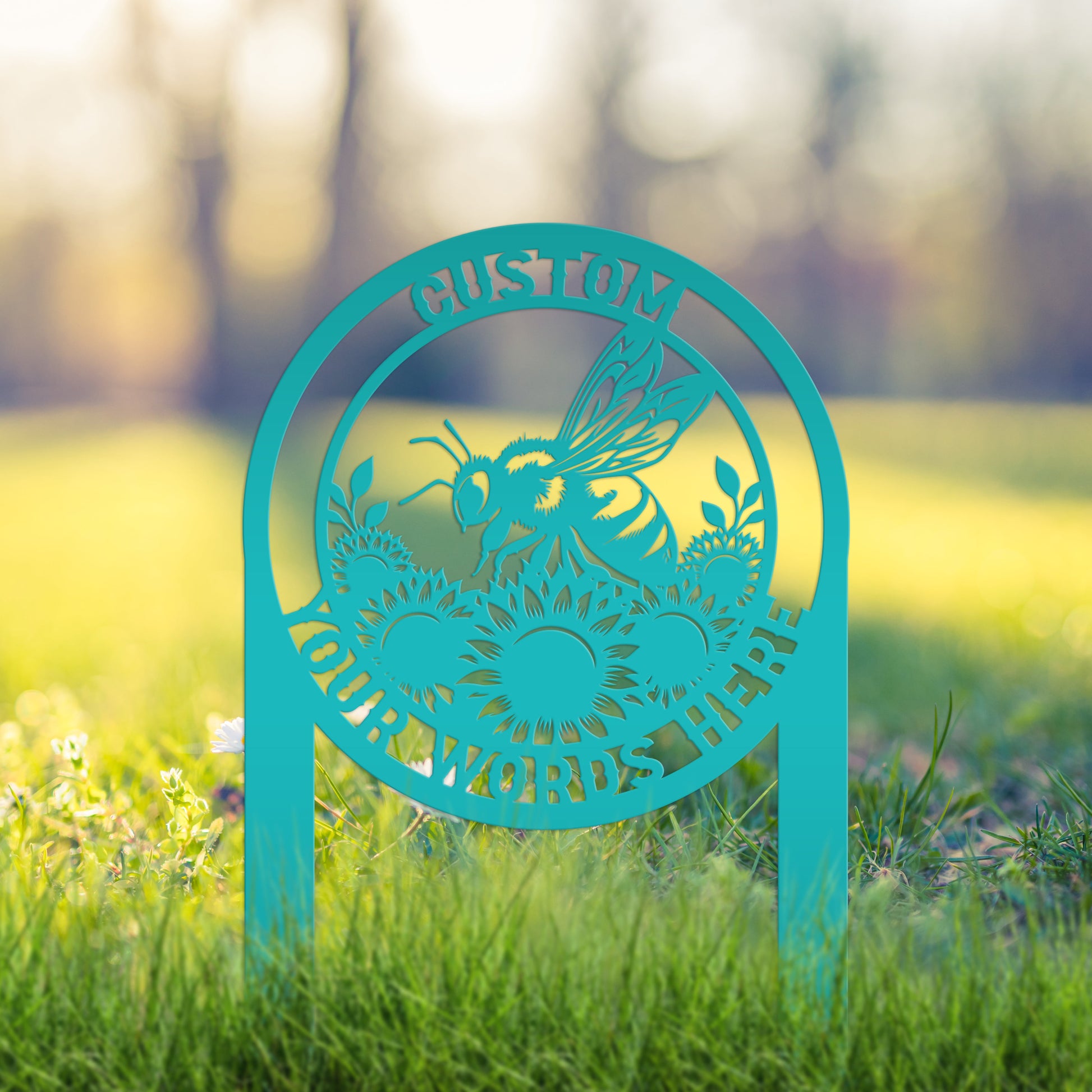 Joycorners Custom Sunflower Garden Stake with Bee Design - Personalized Metal Yard Art - Honeybee Farmhouse Decor - Unique Farm Sign - Gift for Grandma LM0110