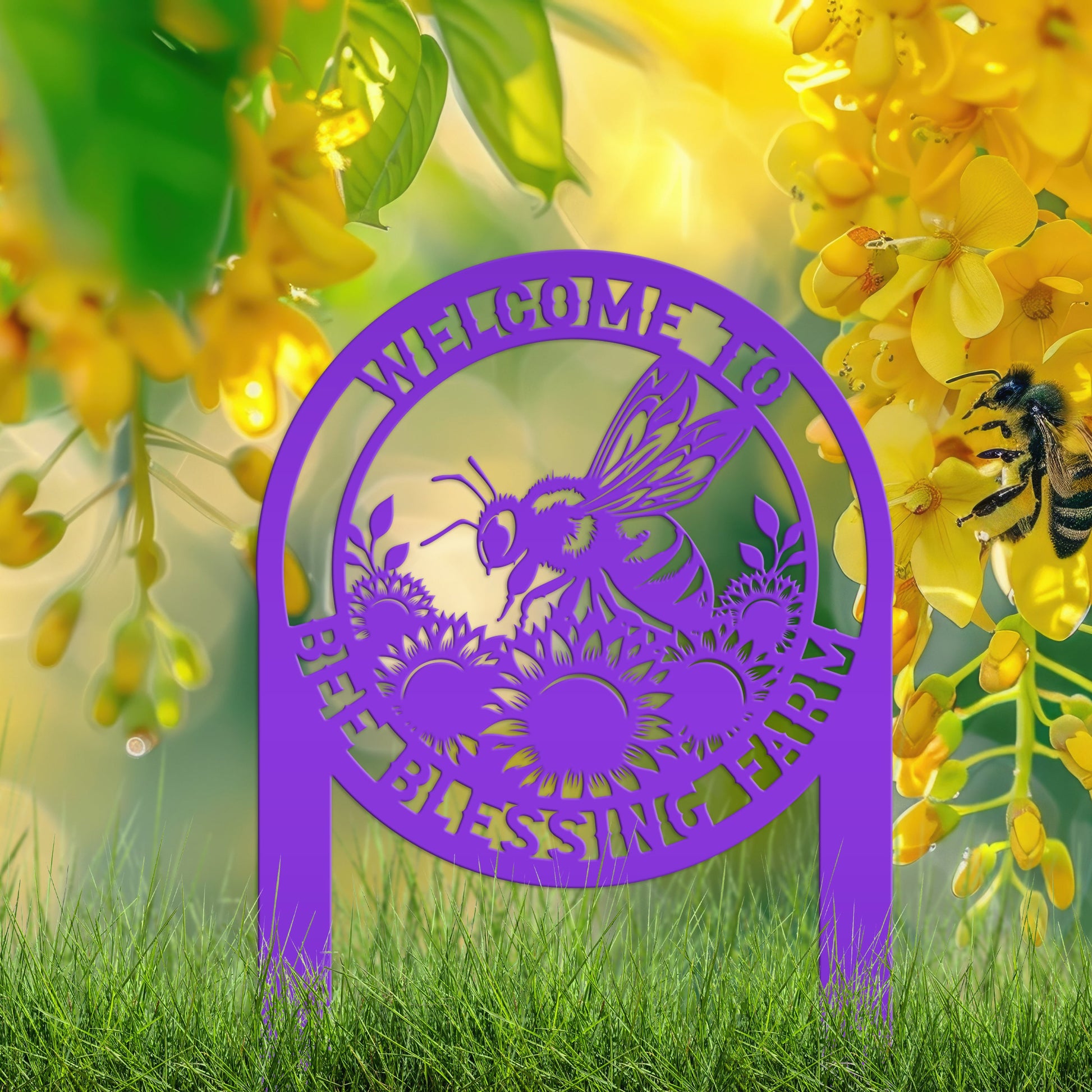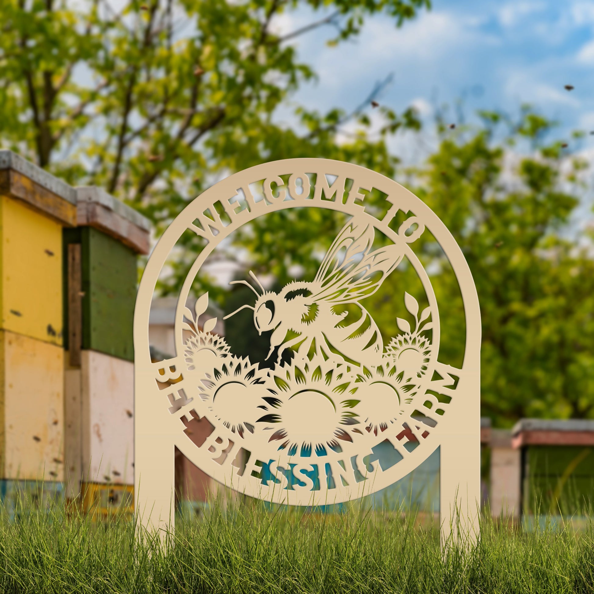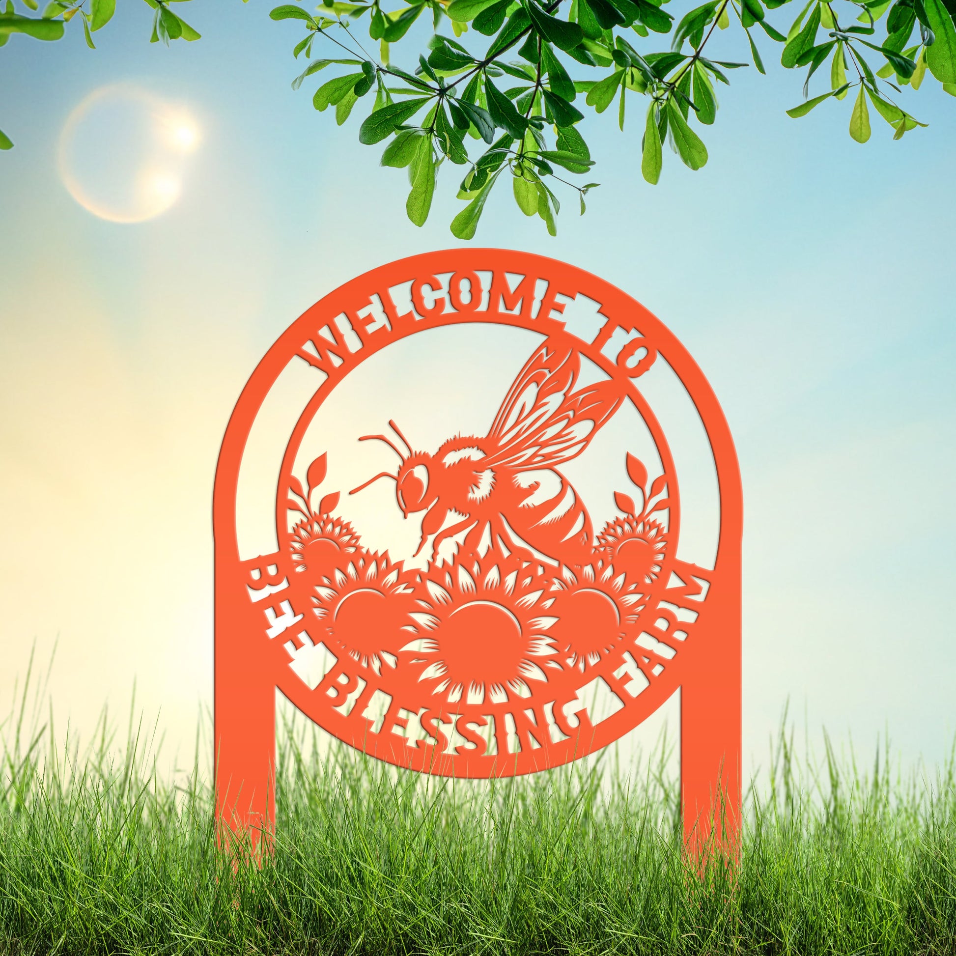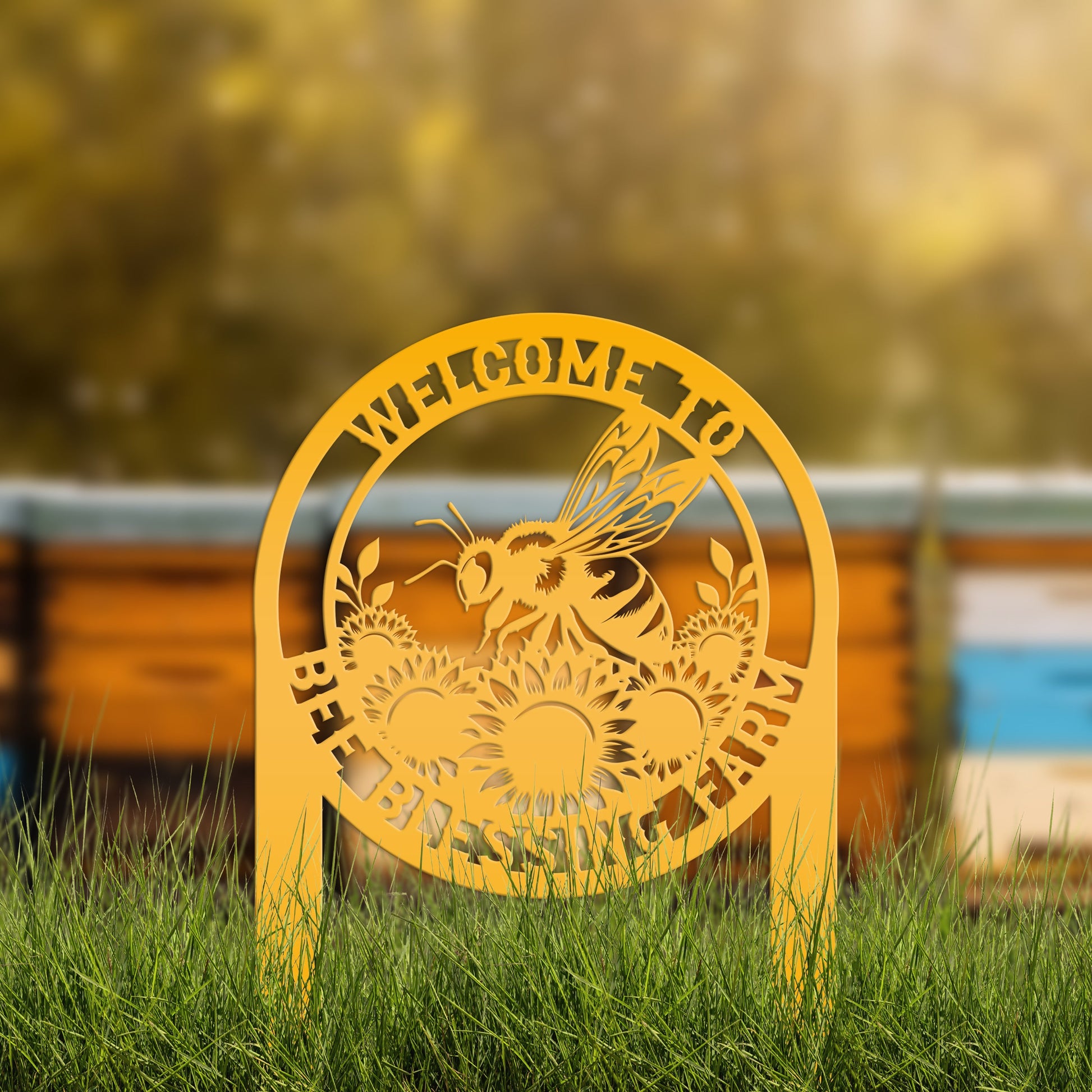 Joycorners Custom Sunflower Garden Stake with Bee Design - Personalized Metal Yard Art - Honeybee Farmhouse Decor - Unique Farm Sign - Gift for Grandma LM0110