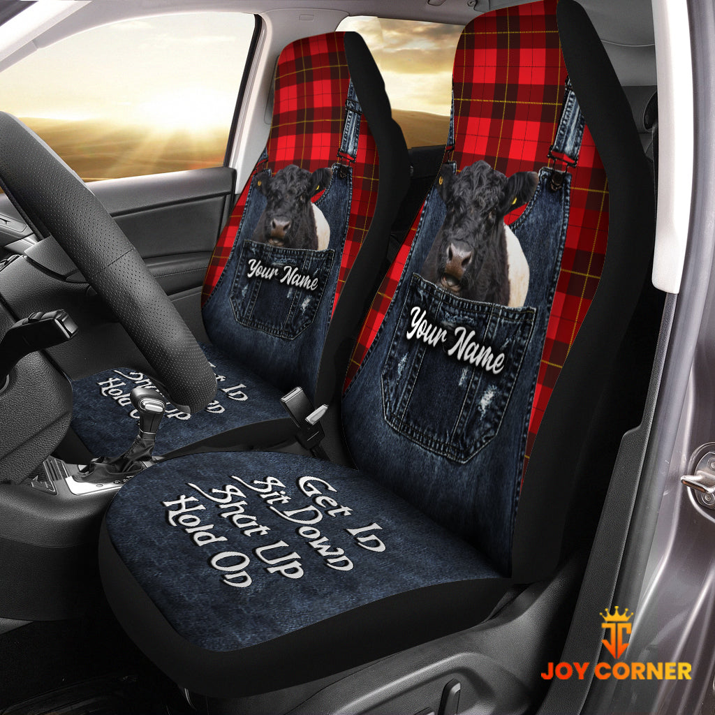 Joycorners Customized Name Belted Galloway Jean Overalls Pattern Car Seat Covers (2Pcs)