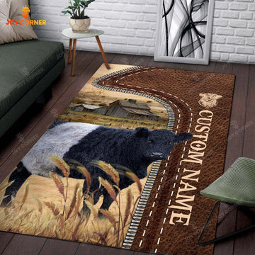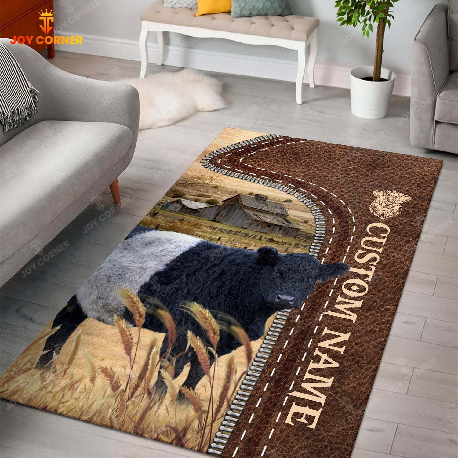 Joycorners Customized Name Belted Galloway Leather Pattern Rug