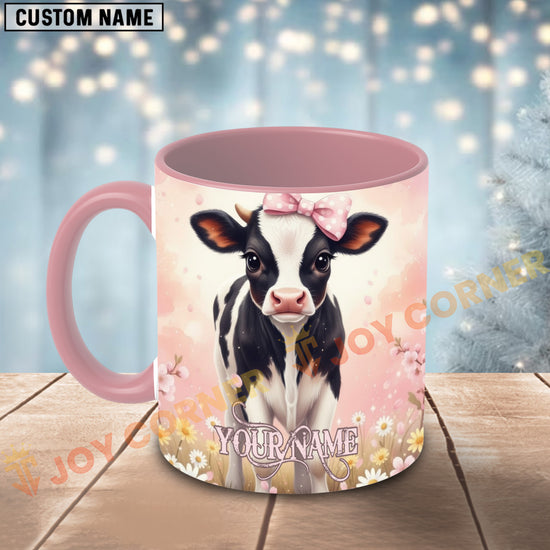 Joycorners Cute Black and White Holstein Calf Pink Bow Custom Name Mug