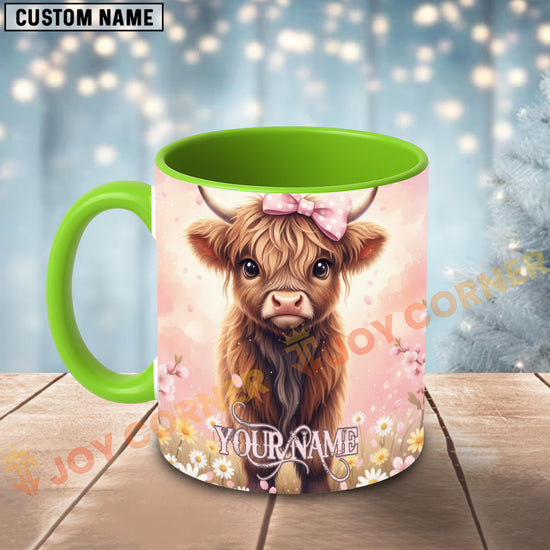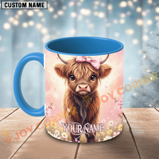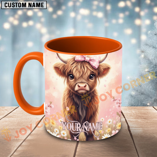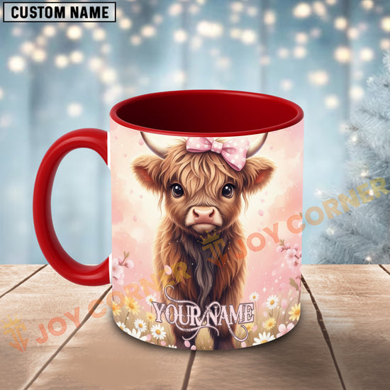 Joycorners Cute Highland Cow Pink Bow Custom Name Mug