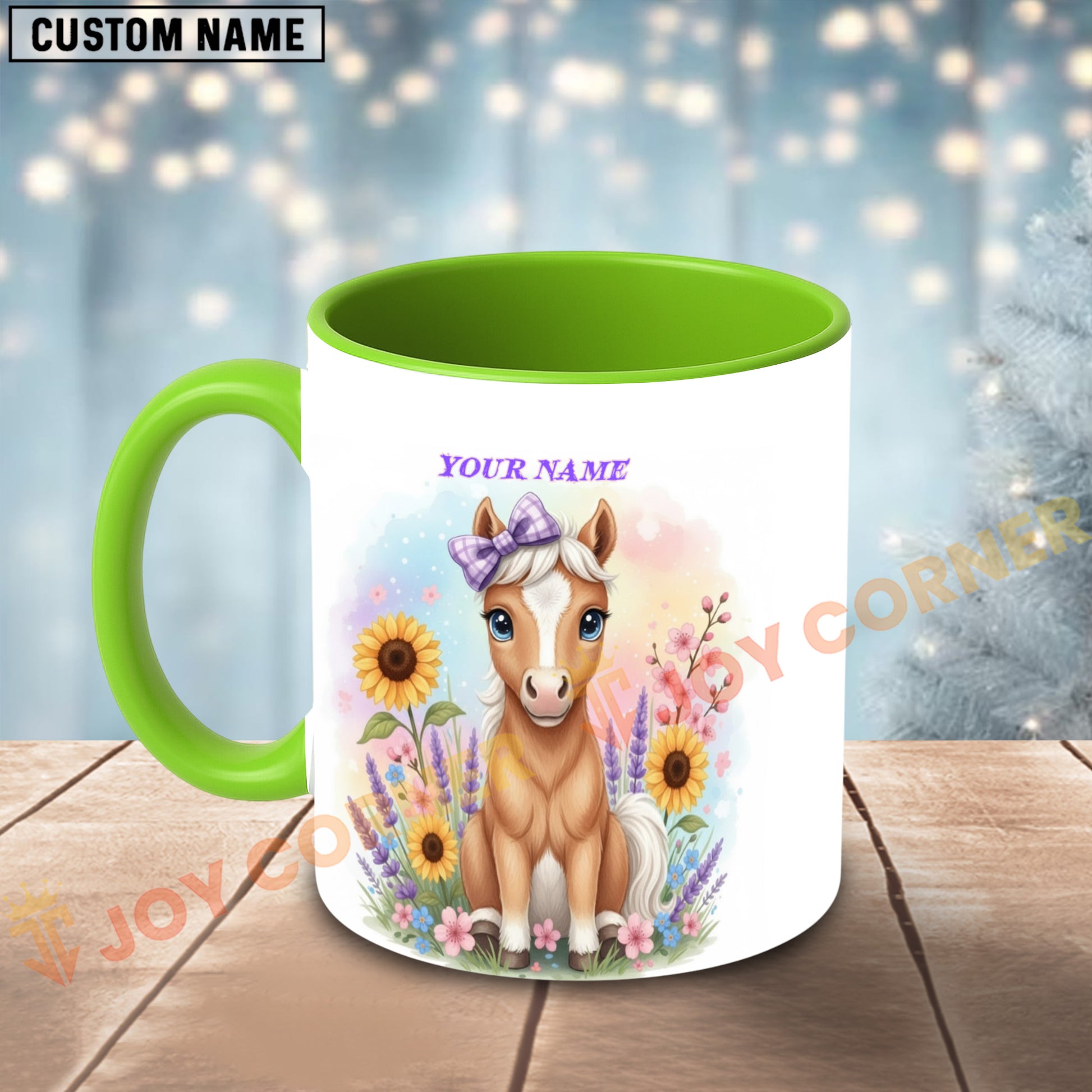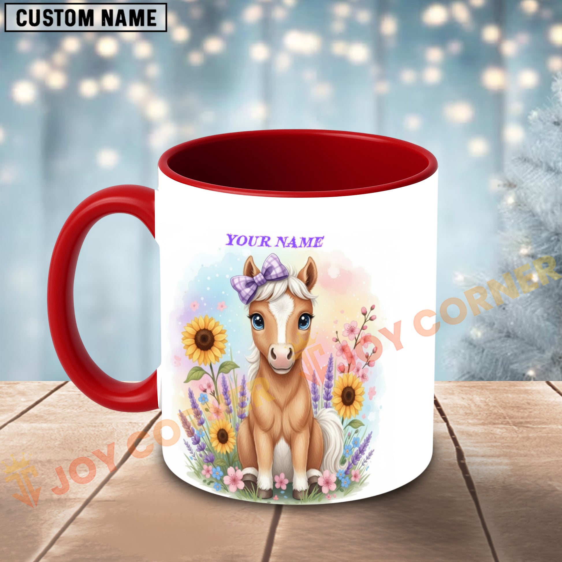 Joycorners Cute Horse Pony Purple Bow Sunflower Custom Name Mug