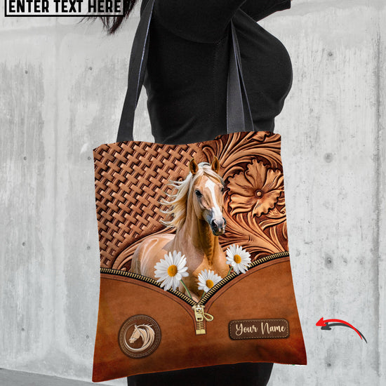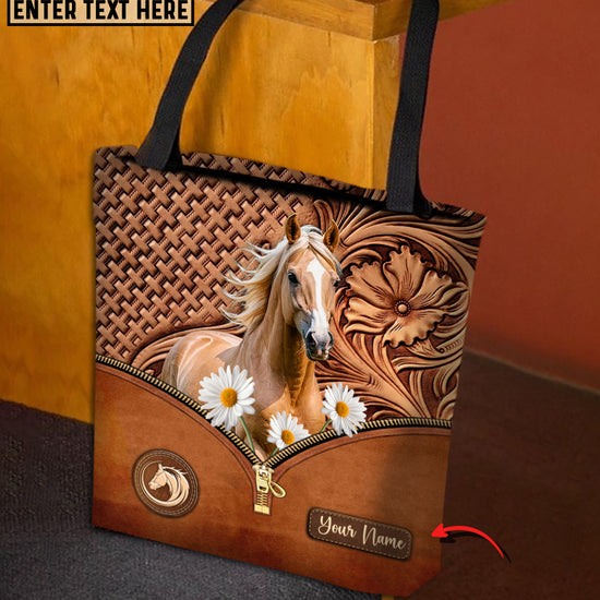 Joycorners Daisy Palomino Horse Carving Leather Pattern Custom Name 3D Tote Bag