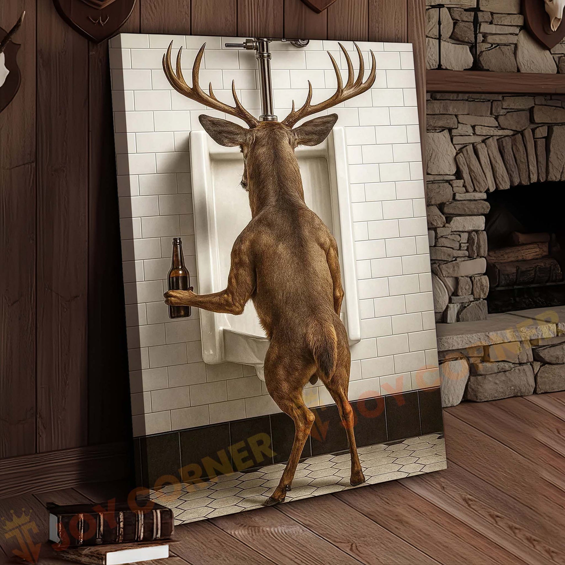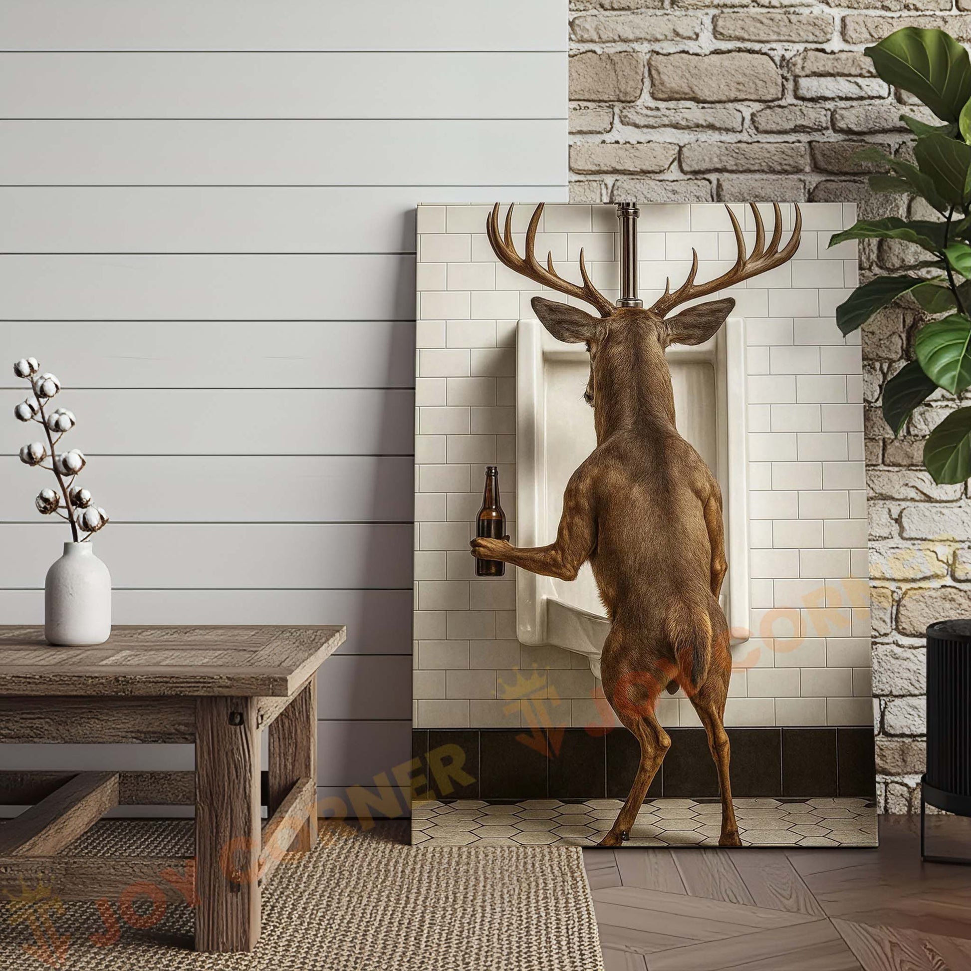 Joycorners Deer Holding Beer at Urinal Wrapped Canvas