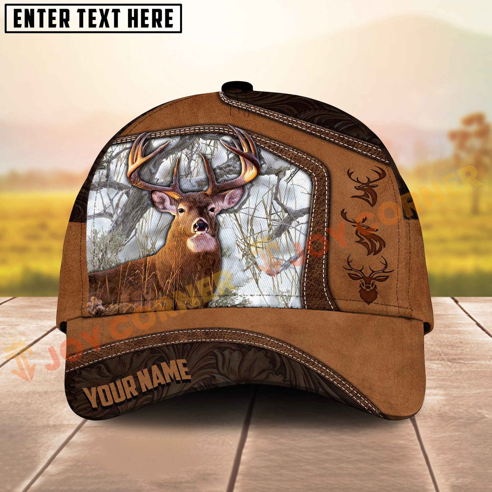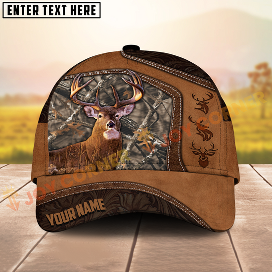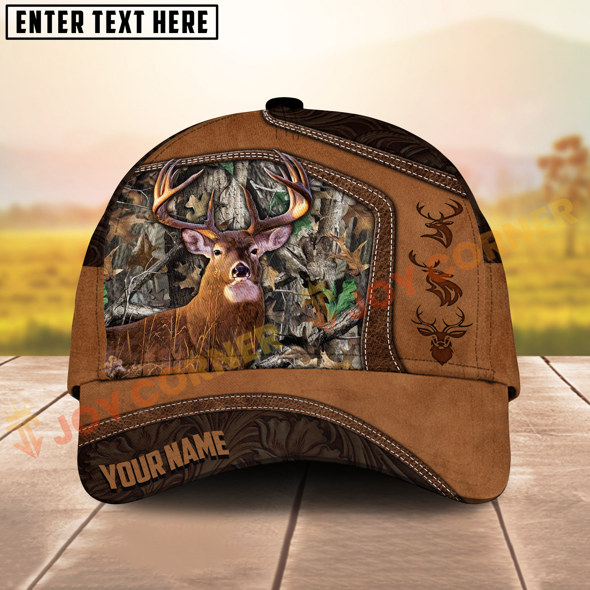 Joycorners Deer Hunter Camo Leather Personalized Name 3D Cap (6 Colors)
