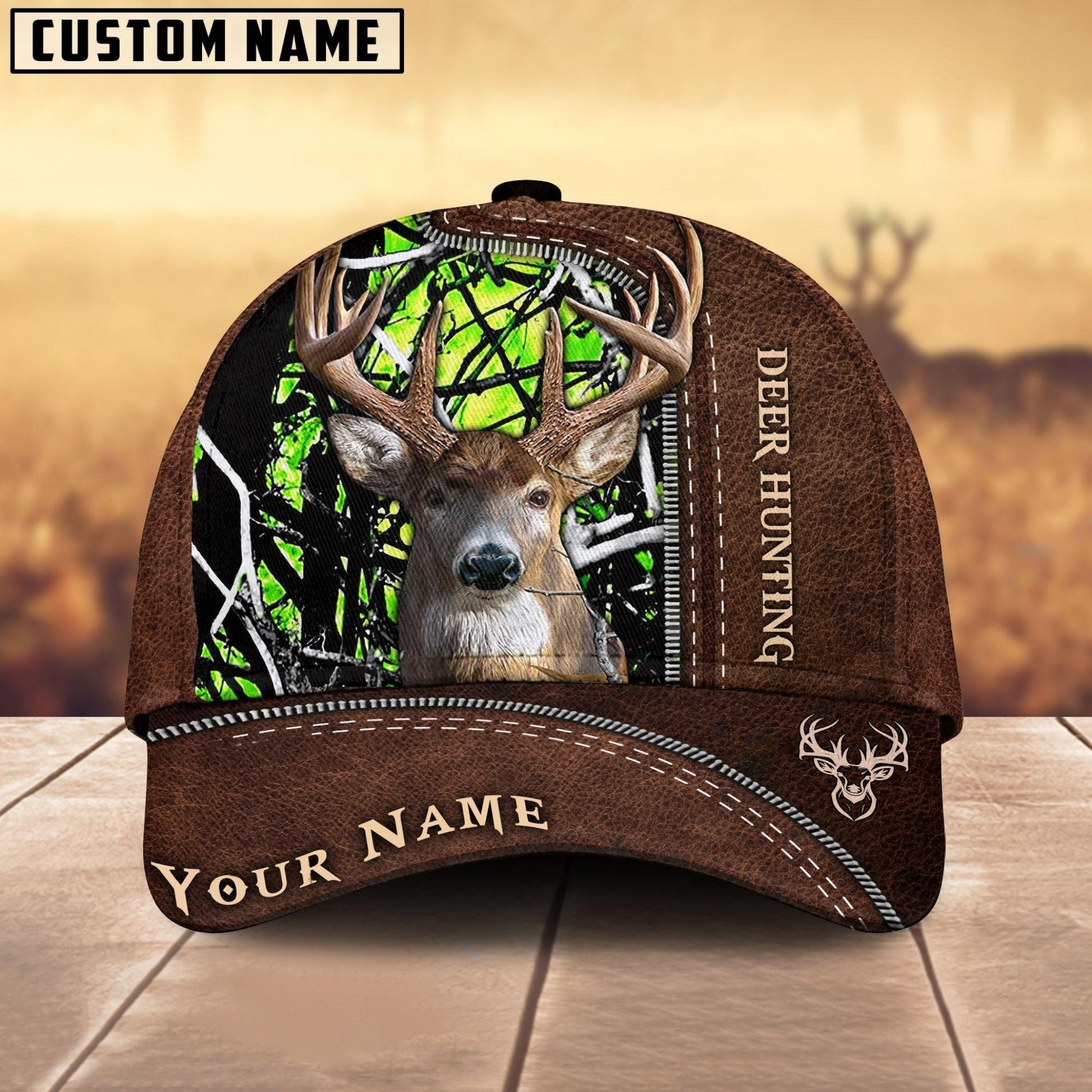 Joycorners Deer Hunting Brown Leather Pattern Mutilcolored Personalized Name 3D Cap