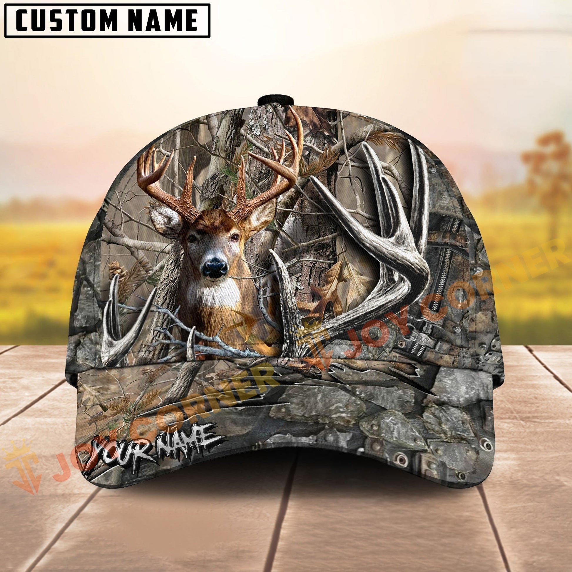 Joycorners Deer Hunting Hat – 3D Buck Antler Forest Camo Design – Custom Personalized Name Hunting Cap
