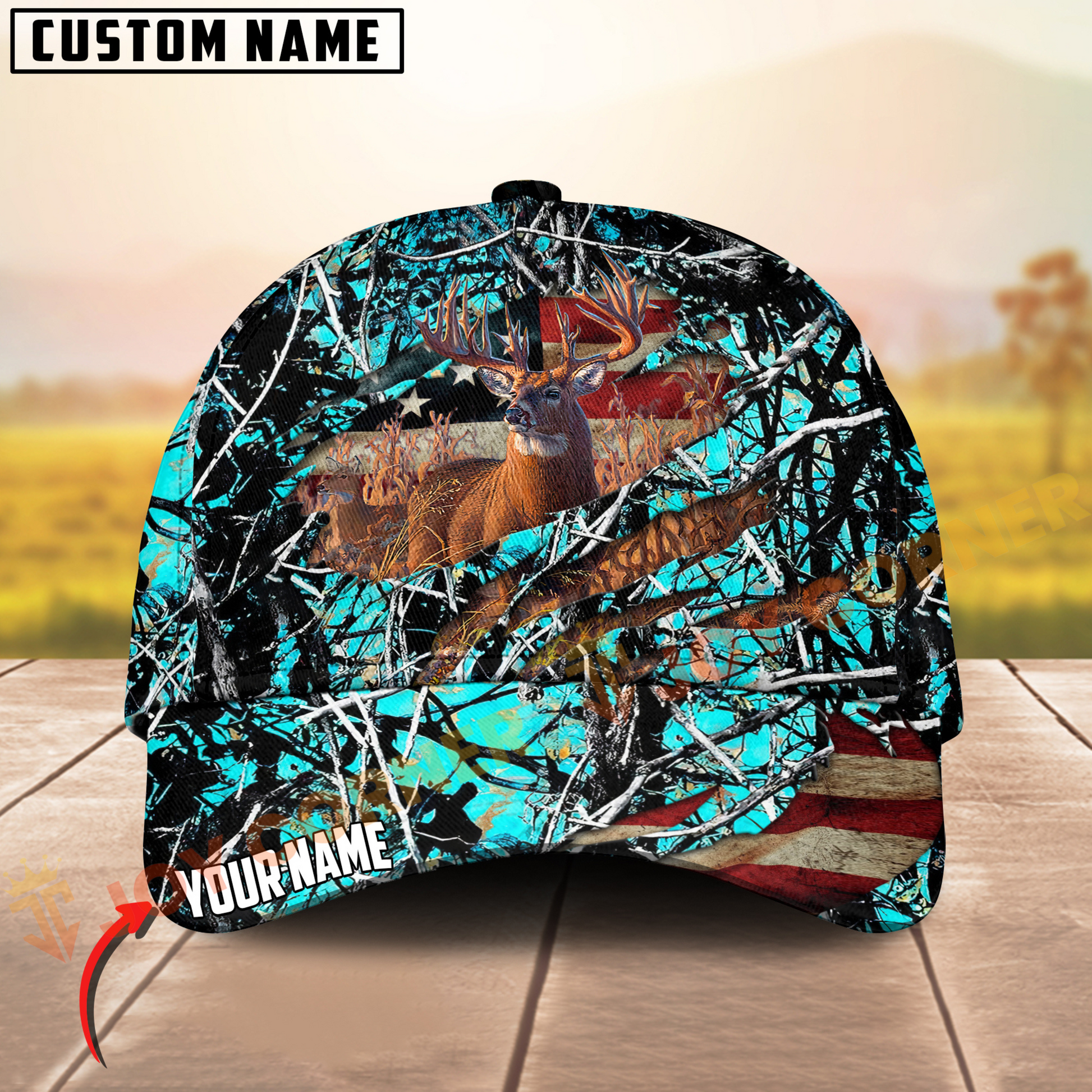 Joycorners Deer Hunting USA Flag Crack Camo Pattern Personalized Name 3D Cap
