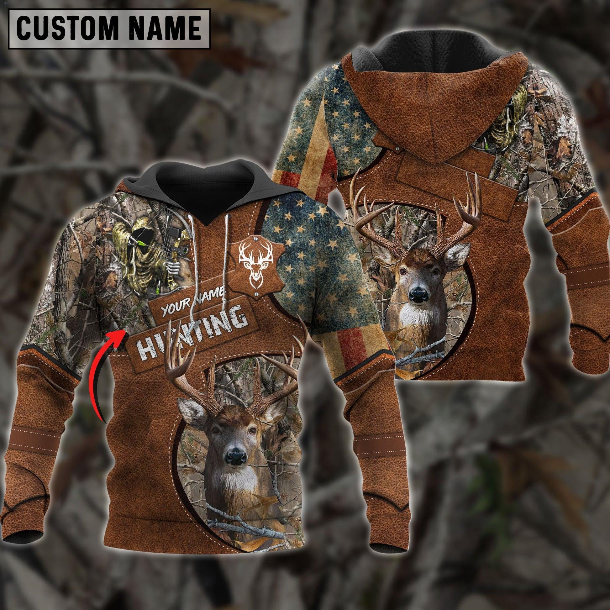 Joycorners Deer Hunting Personalized Name Brown Leather Pattern 3D Hoodie