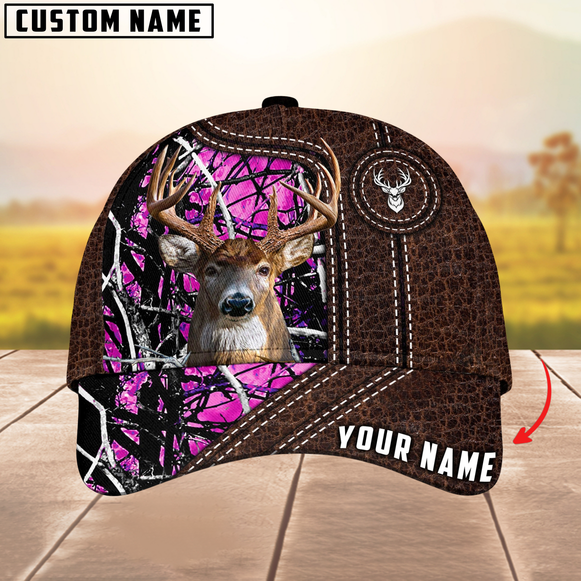 Joycorners Deer Hunting Premium Leather Pattern Mutilcolored Personalized Name 3D Cap