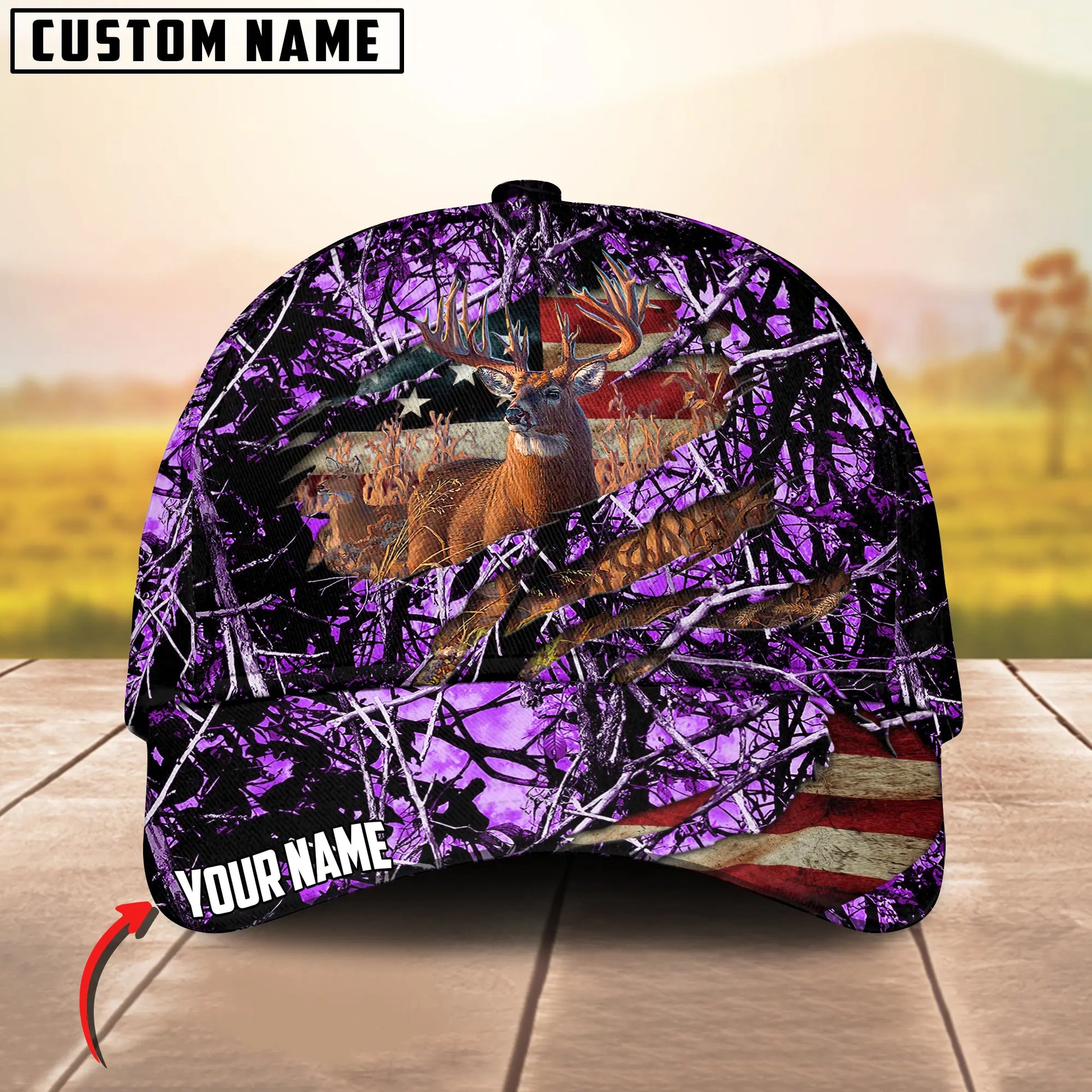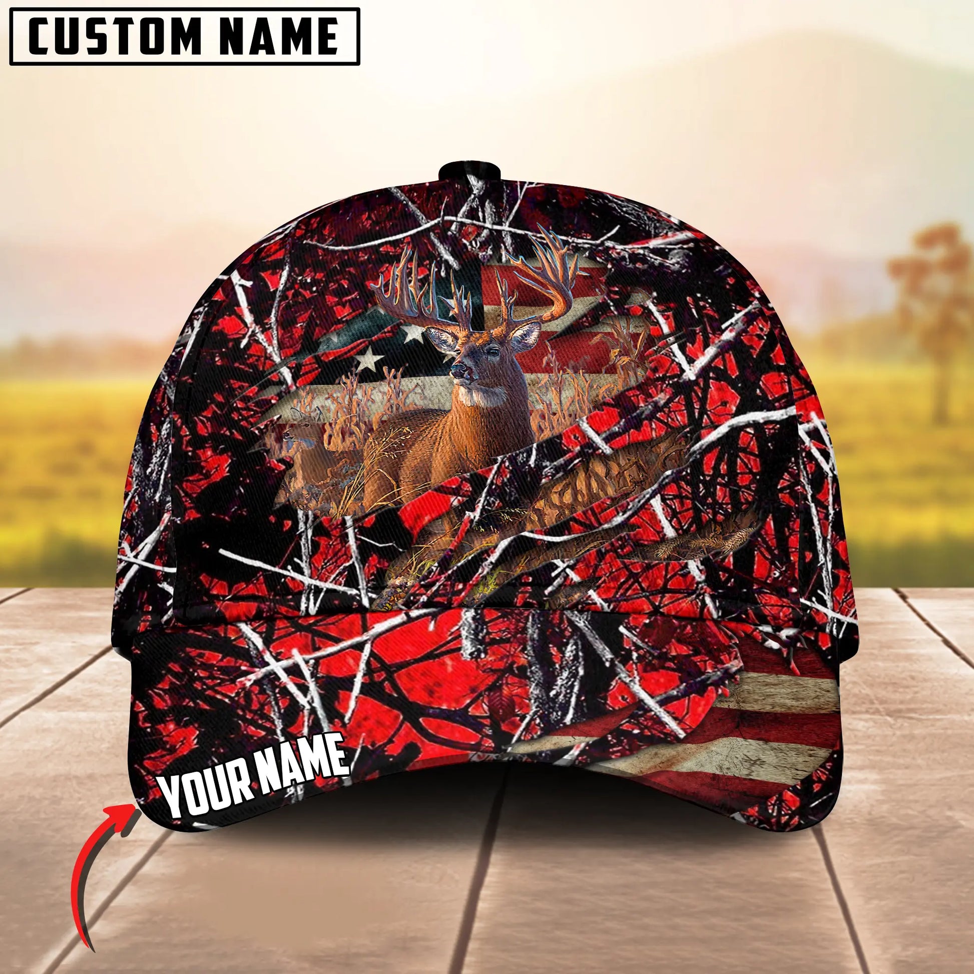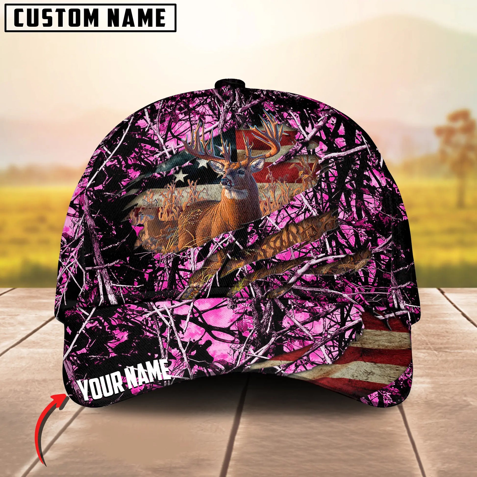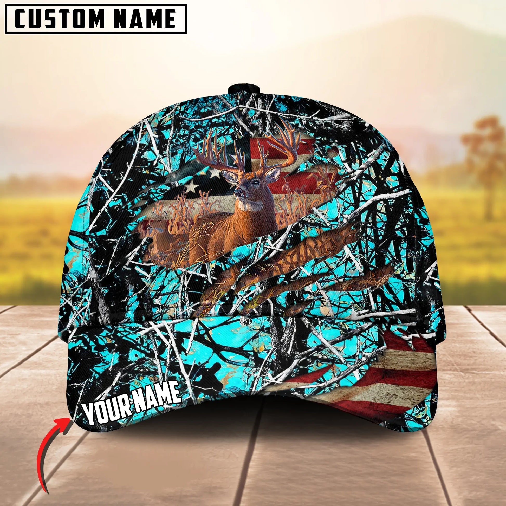 Joycorners Deer Hunting USA Flag Crack Camo Pattern Personalized Name 3D Cap