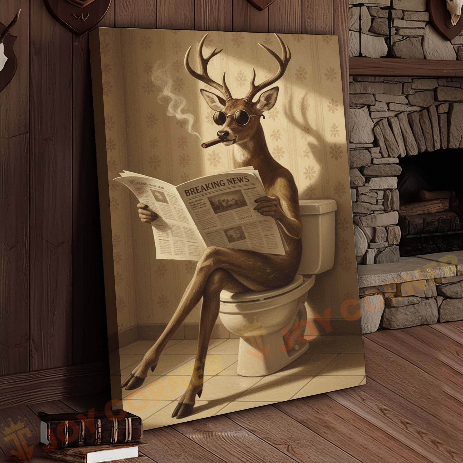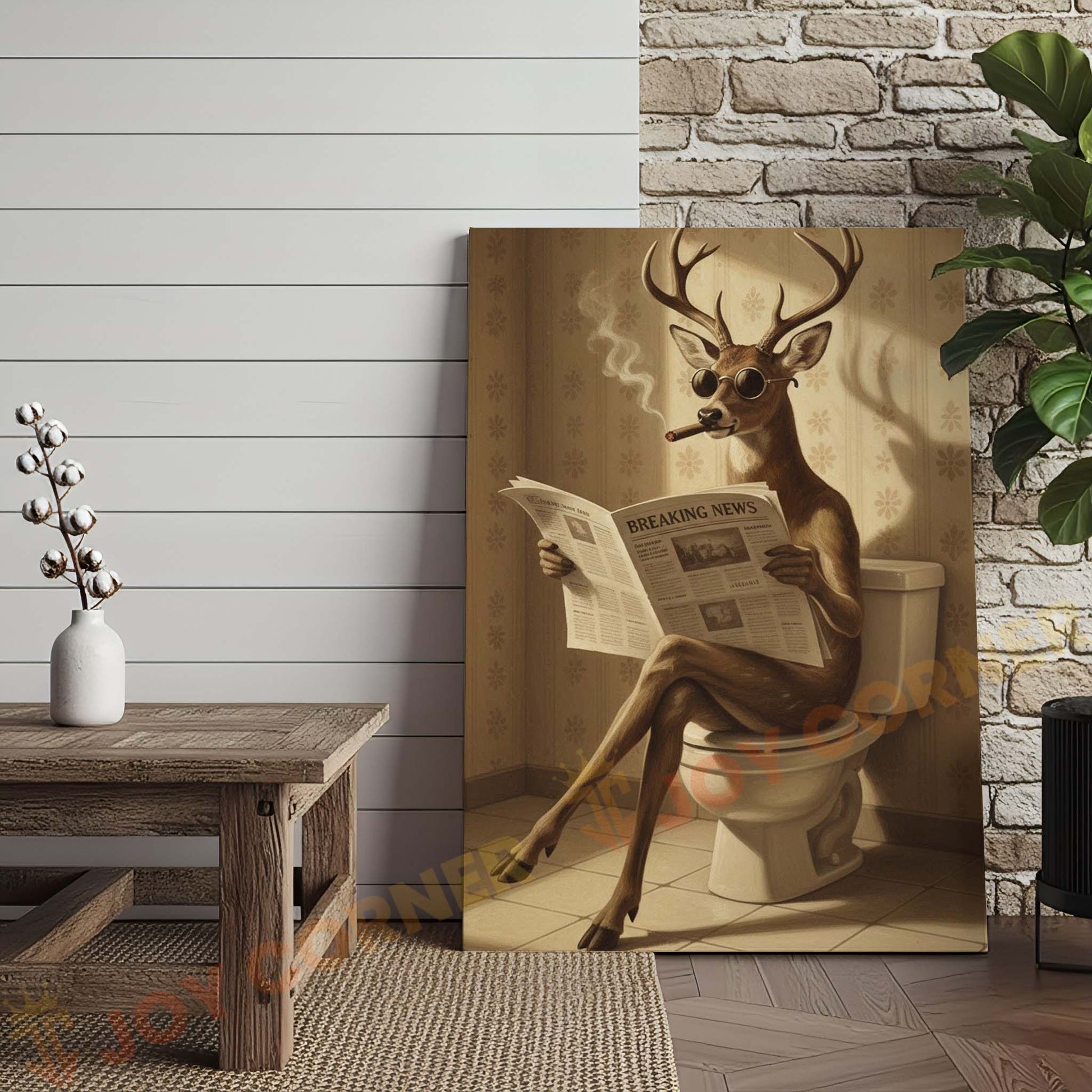 Joycorners Deer Reading Breaking News Monochrome Style Wrapped Canvas