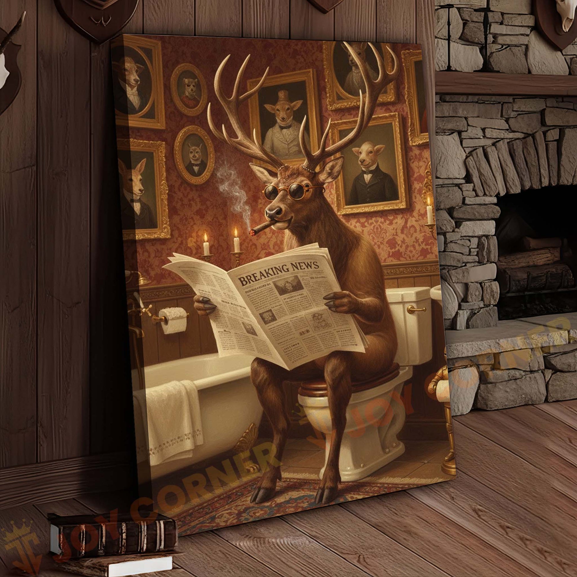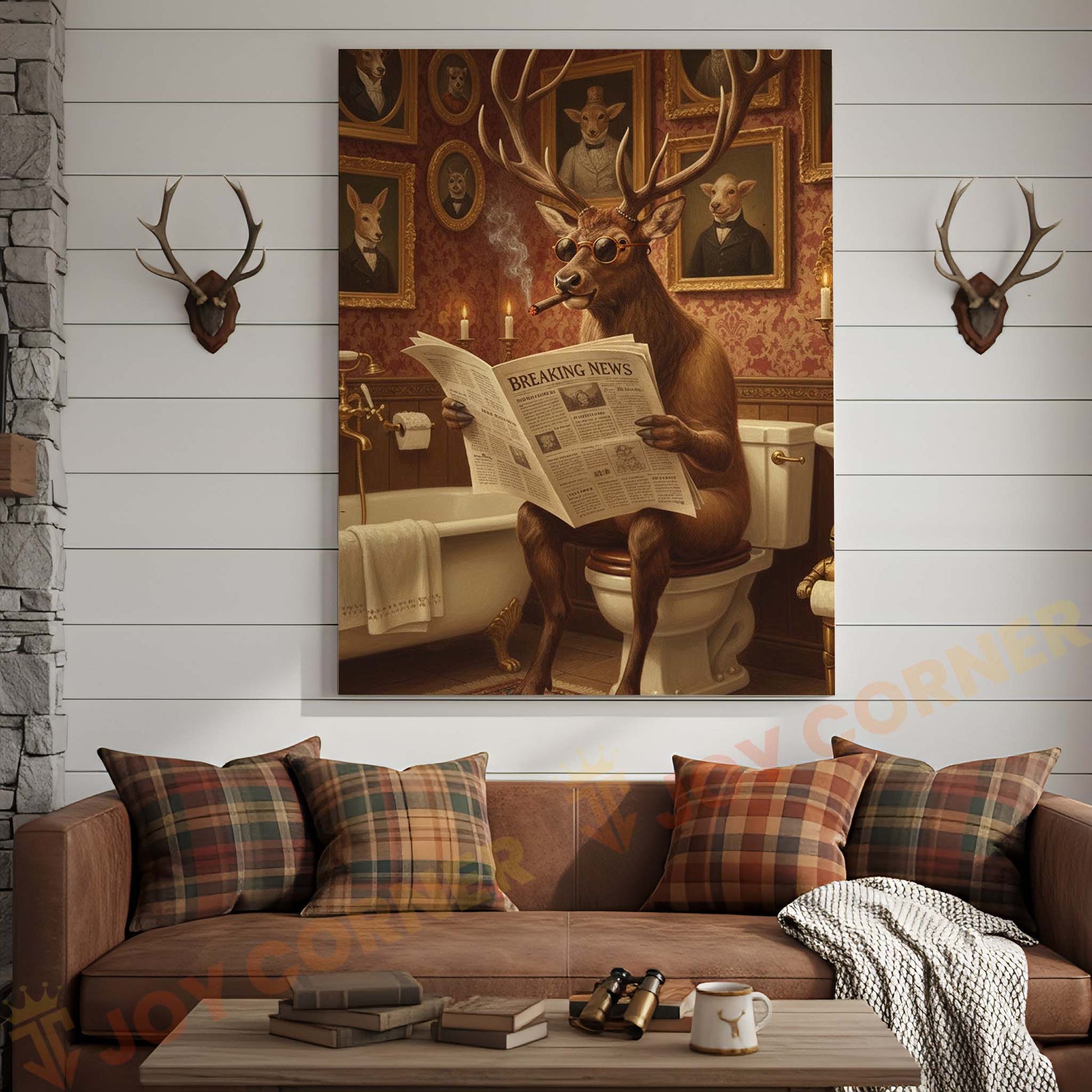 Joycorners Deer Reading Breaking News with Sunglasses Wrapped Canvas