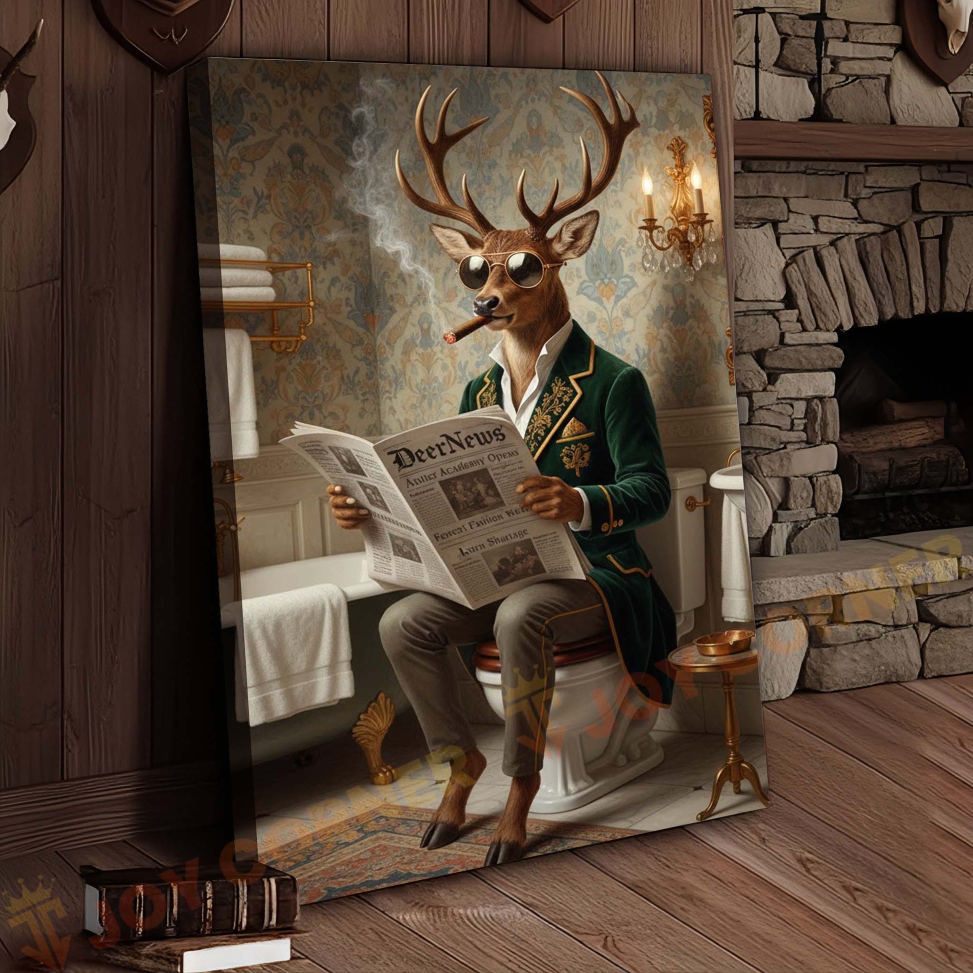 Joycorners Deer Reading DeerNews in Bathroom Wrapped Canvas