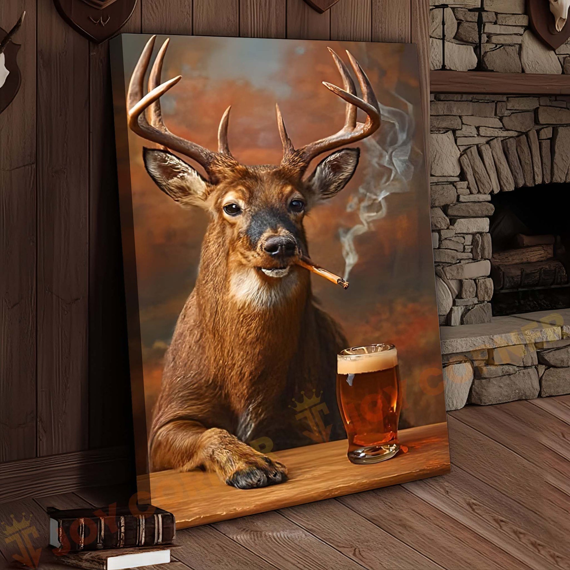 Joycorners Deer with Beer Mug and Smoke Wrapped Canvas